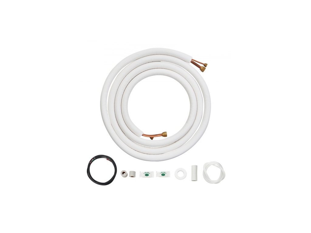 Sada mini děleného potrubí 4876,8 mm, měděné trubky s vnějším průměrem 6,4 a 12,7 mm a trojvrstvá izolace, pro klimatizaci nebo topná čerpadla a HVAC s bohatým příslušenstvím (připojovací kabel 18 stop)