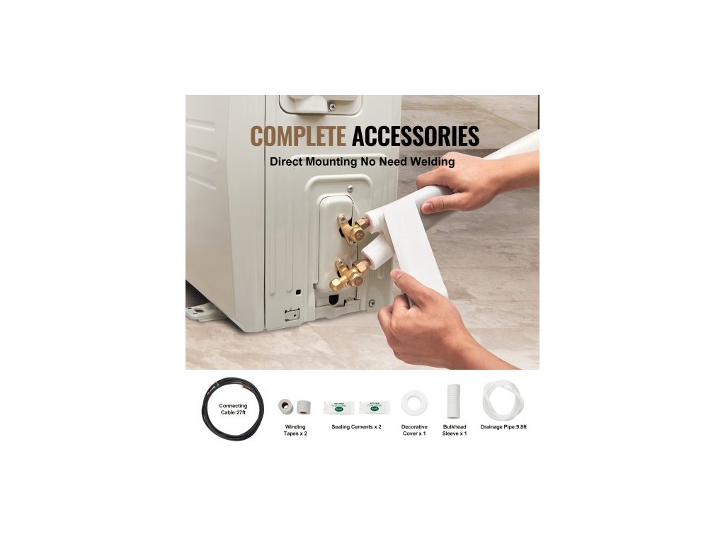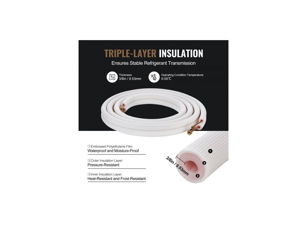 Sada mini děleného potrubí 7620 mm, měděné trubky s vnějším průměrem 6,4 a 9,5 a trojvrstvou izolací, pro klimatizaci nebo topná čerpadla a HVAC s bohatým příslušenstvím (připojovací kabel 27 stop)Vysoká flexibilita