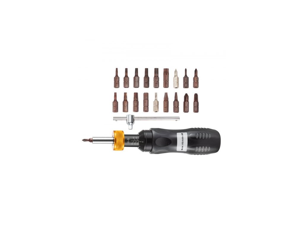 Sada momentových klíčů 1/4" Drive, rozsah nastavení momentu 10-50 in-lb, rozsah momentu s přesností ±5 %, kroužek 5 in-lb Momentový šroubovák s 18 bity a pouzdremVysoce přesný momentový šroubovák