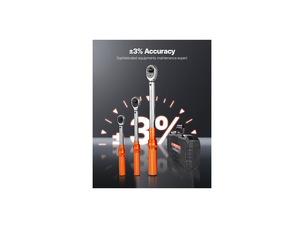 Sada momentových klíčů Click, 3 kusy, pohon 1/4, 3/8, 1/2 palce, 10–170 lbf-ft, 5–45 lbf-ft, 20–240 lbf-in, stupnice s dvojitým směrem a dvojitým rozsahem, 72 zubů, vysoká přesnost ±3 %, pro opravy jízdních kolVysoká přesnost ±3 %