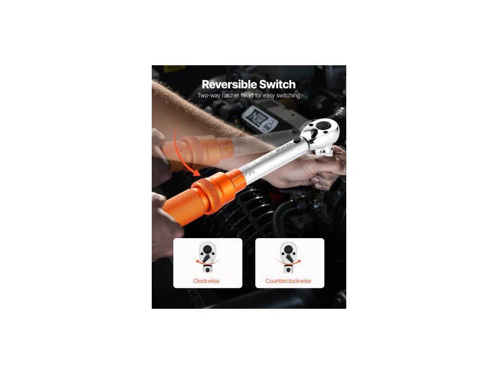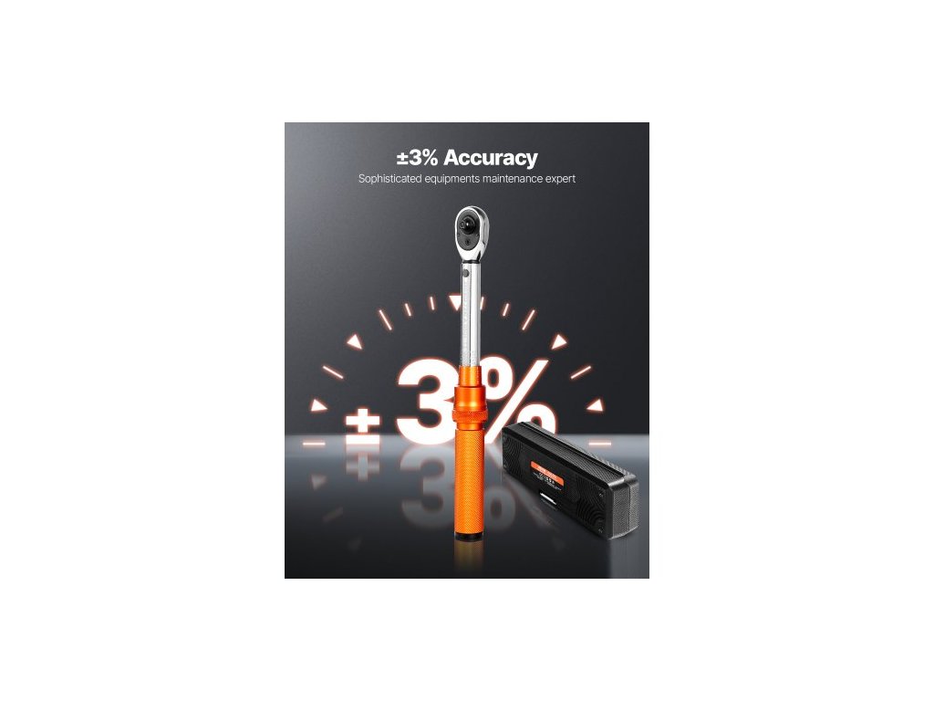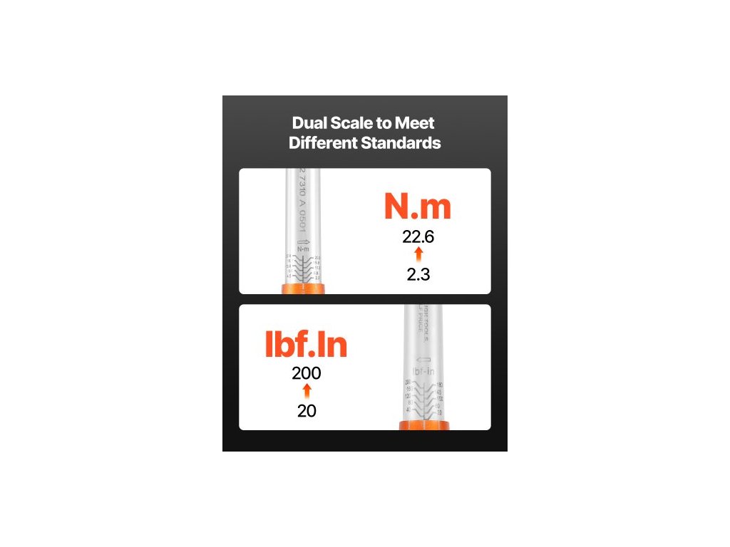 Sada momentových klíčů Click, pohon 1/4 palce, 20–200 lbf-in/2,3–22,6 Nm, stupnice s dvojitým směrem a dvojitým rozsahem, 72 zubů, vysoká přesnost ±3 %, s nástrčnými hlavicemi, prodlužovací tyčí, pro opravy jízdních kol, oranžováVysoká přesnost ±3 %