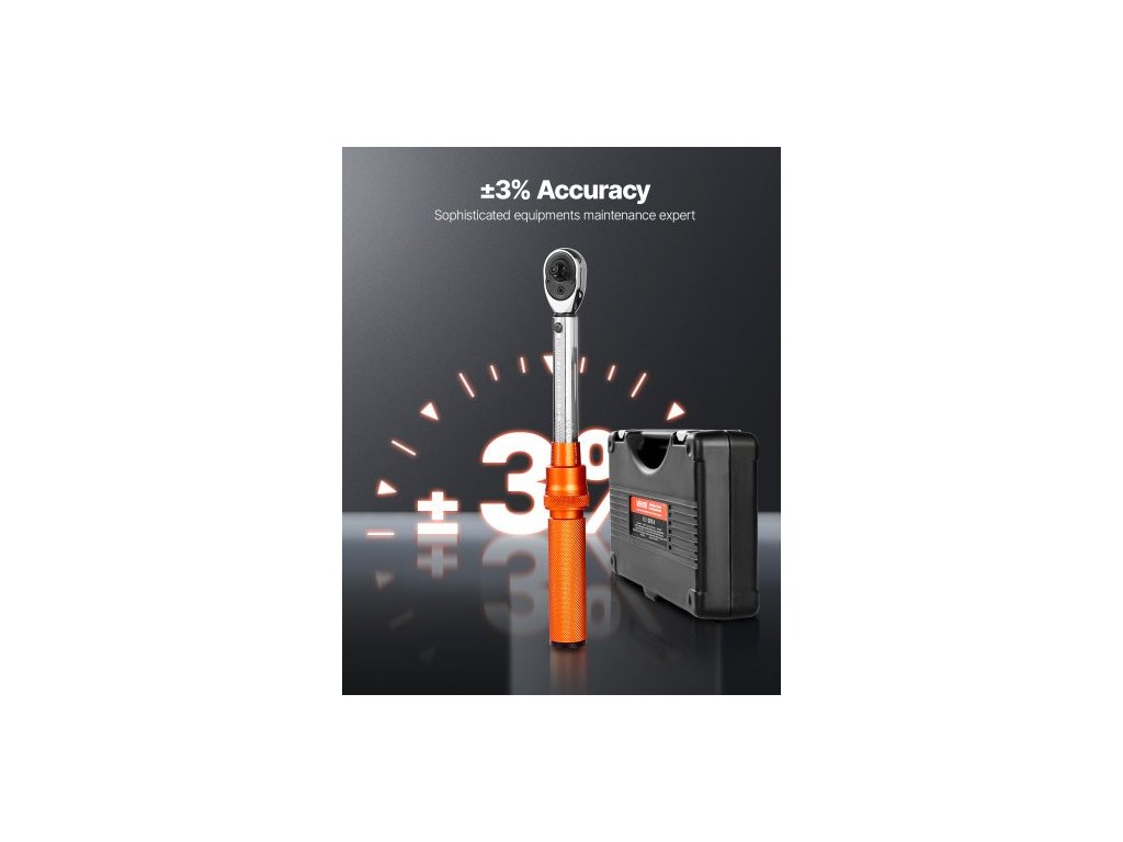 Sada momentových klíčů Click, pohon 1/4 palce, 20–240 lbf-in / 2,3–27,1 N.m, stupnice s dvojitým směrem a dvojitým rozsahem, 72 zubů, vysoká přesnost ±3 %, s bity, nástrčnými klíči, adaptéry, prodlužovací tyčí, oranžováVysoká přesnost ±3 %