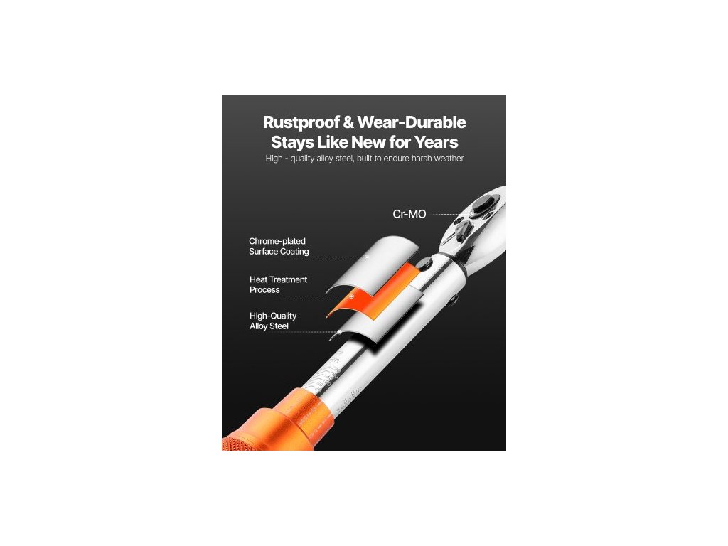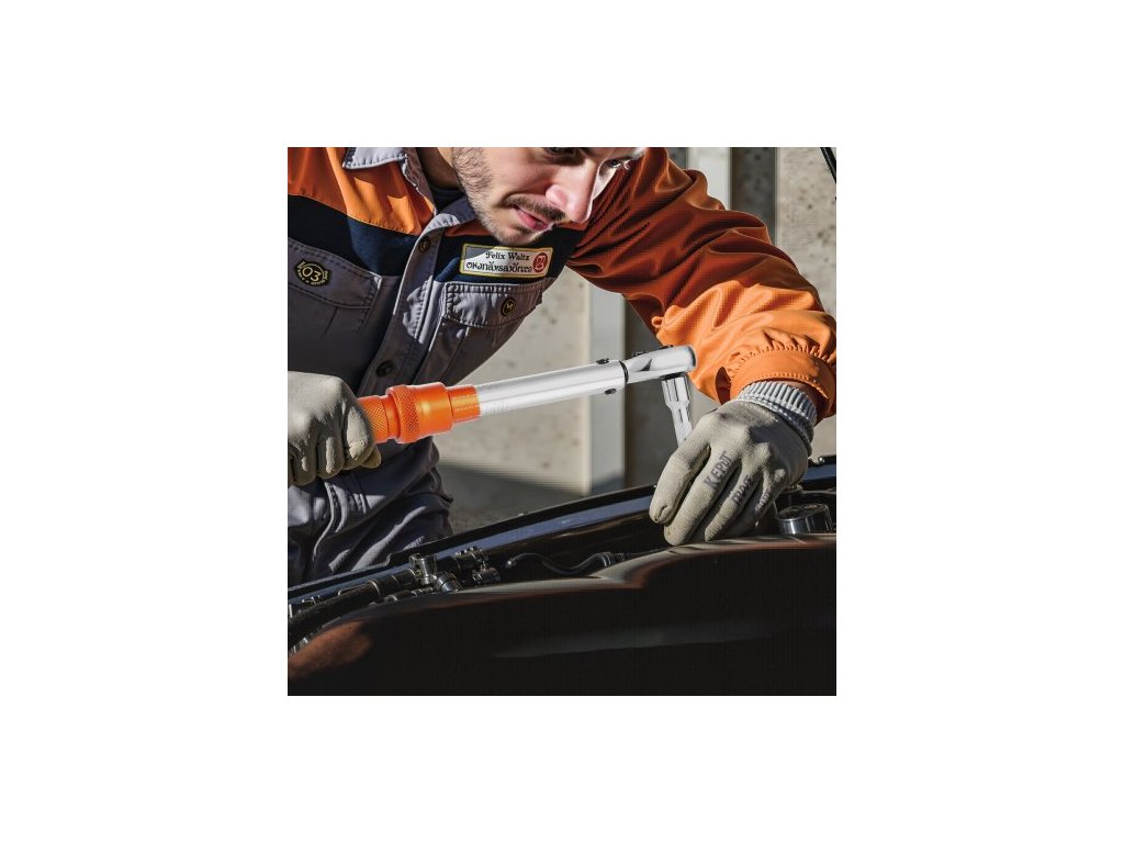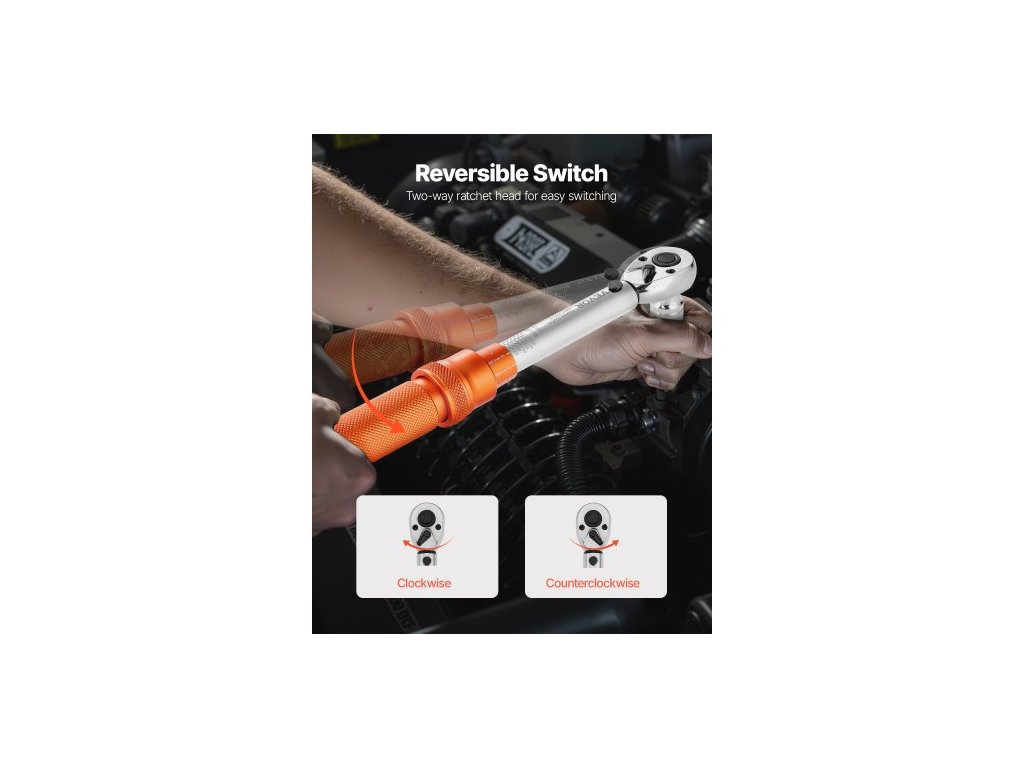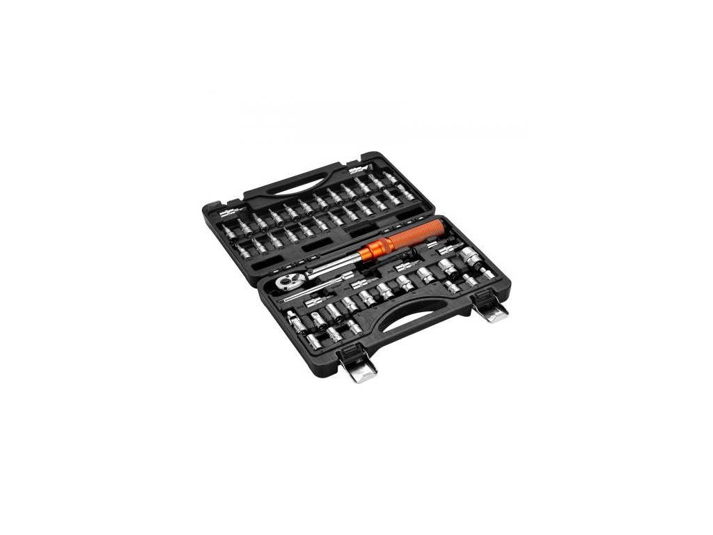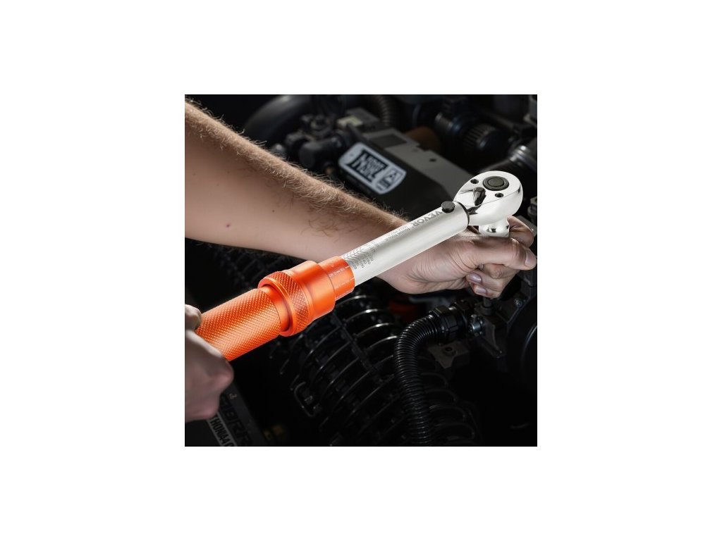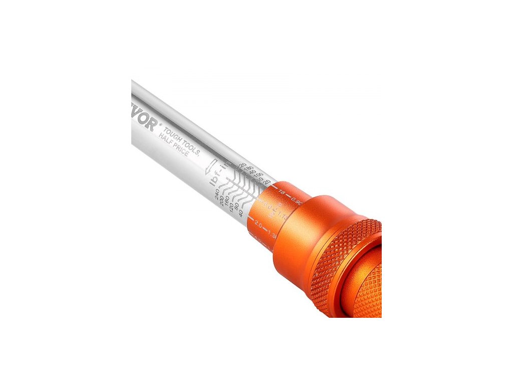 Sada momentových klíčů Click, pohon 1/4 palce, 20–240 lbf-in / 2,3–27,1 N.m, stupnice s dvojitým směrem a dvojitým rozsahem, 72 zubů, vysoká přesnost ±3 %, s bity, nástrčnými klíči, adaptéry, prodlužovací tyčí, oranžová