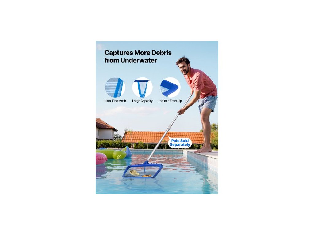 Sada na čištění bazénů , obsahuje 2 odnímatelné kartáčové hlavice (508 mm / 139,7 mm) a 2 skimmerové sítě, sada 4 v 1 čisticích nástrojů pro zapuštěné/nadzemní bazény na listí, jemné síto, bez tyčíVšestranný čisticí výkon