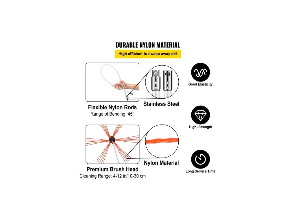 Hlavní barva: Bílá,Celková délka: 10 m,Velikost vnějšího závitu: 1/2",Materiál: Nylon,Velikost klíče: 17 mm,Průměr čištění pramene: 12"-24",Délka kartáče: 30 mm,Rozsah čištění kartáče: 4"-12"