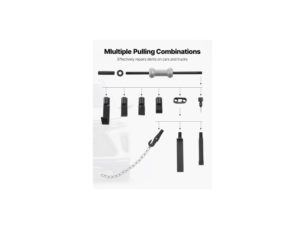 Sada na odstraňování promáčklin , 4,54 kg, 13v1 posuvné kladivo, sada na odstraňování promáčklin, opravy karoserií a nákladních vozidel, nástroj na odstraňování promáčklin z automobilů, rám na opravy s přepravním pouzdrem, prodlužovací tyčí,