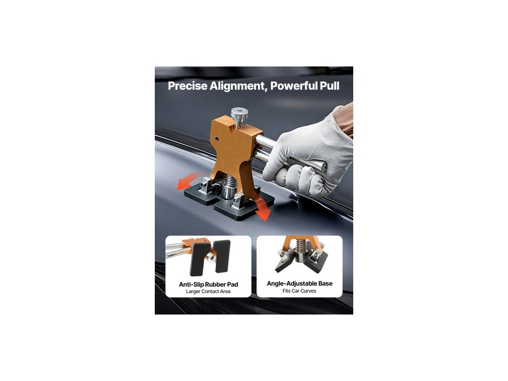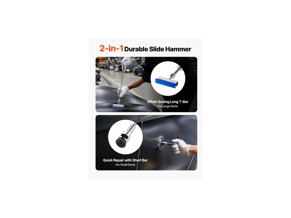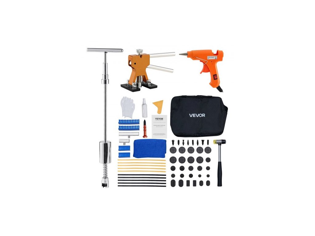 Sada na odstraňování promáčklin , 61dílná sada na odstraňování promáčklin bez laku se zlatým zvedákem, posuvným kladivem ve tvaru T, lepicí pistolí, nástrojem na opravu poškození karoserie automobilu po krupobití, nástrojem pro opravu velkých a malých promáčklin na dveřích automobilové chladničkyErgonomická tažná tyč