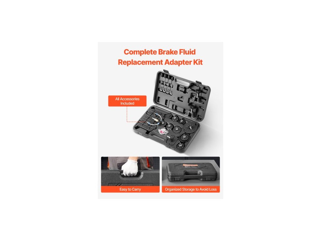 Sada na odvzdušňování brzd Brake Master, 12 dílů, profesionální sada adaptérů na odvzdušňování brzd s kompletní sadou a rukojetí, odolný adaptér na odvzdušňování brzd pro plnění brzdové kapaliny, vhodný pro většinu nových i starších vozidel