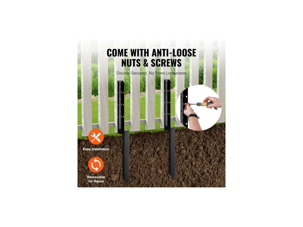Sada na opravu kotev pro plotové sloupky , sada 4 kusů, vnitřní průměr 2 x 2 palce, vysoce odolné ocelové podpěrné kolíky pro plotové sloupky, zemní hrot pro opravu nakloněného, zlomeného dřevěného plotového sloupkuSnadné pronikání do půdy
