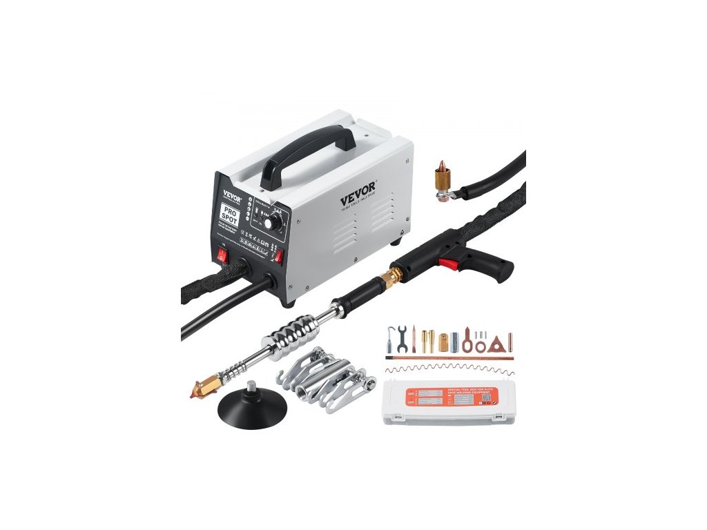 Sada na opravu promáčklin pro svářečku studů, bodový svářeč karoserií se 7 režimy svařování a nastavitelným výkonem, 1,8kW bodový svářeč pro opravu promáčklin na autech a nákladních vozechNastavitelný výkon pro přesnost