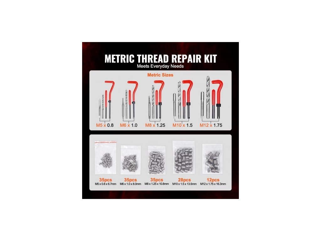 Sada na opravu závitu Helicoil, 166dílná metrická HSS vrtáková sada Helicoil, sada nástrojů pro přeřezávání závitů do cívky Heli Coil M5 M6 M8 M10 M12 s HSS vrtáky, závitovými vložkami, závitníky a montážními nástrojiVáš spolehlivý pomocník při opravách
