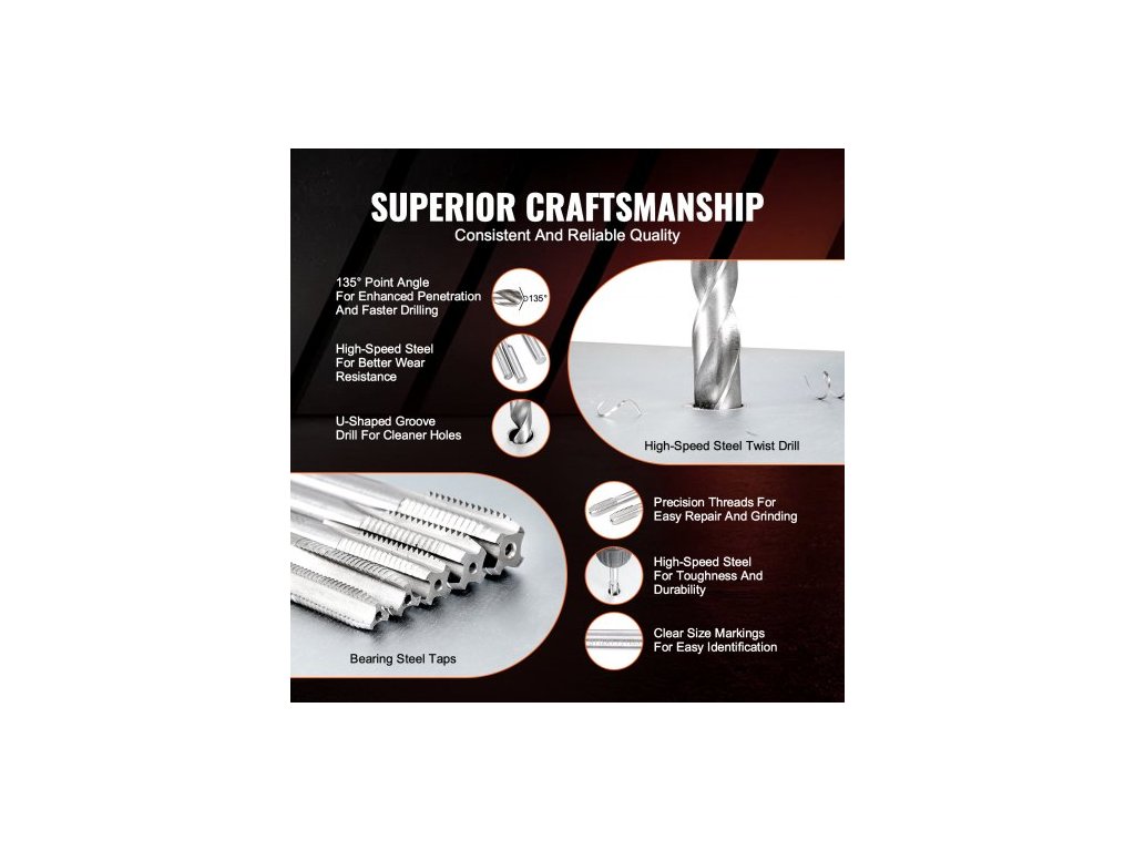Hlavní barva: Červená a černá,Specifikace: M5, M6, M8, M10, M12,Číslo modelu položky: XRGZ166,Množství: 166 ks,Hlavní materiál: HSS