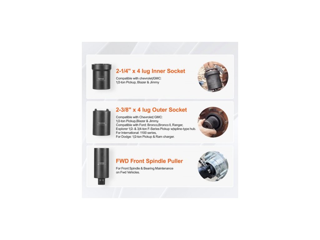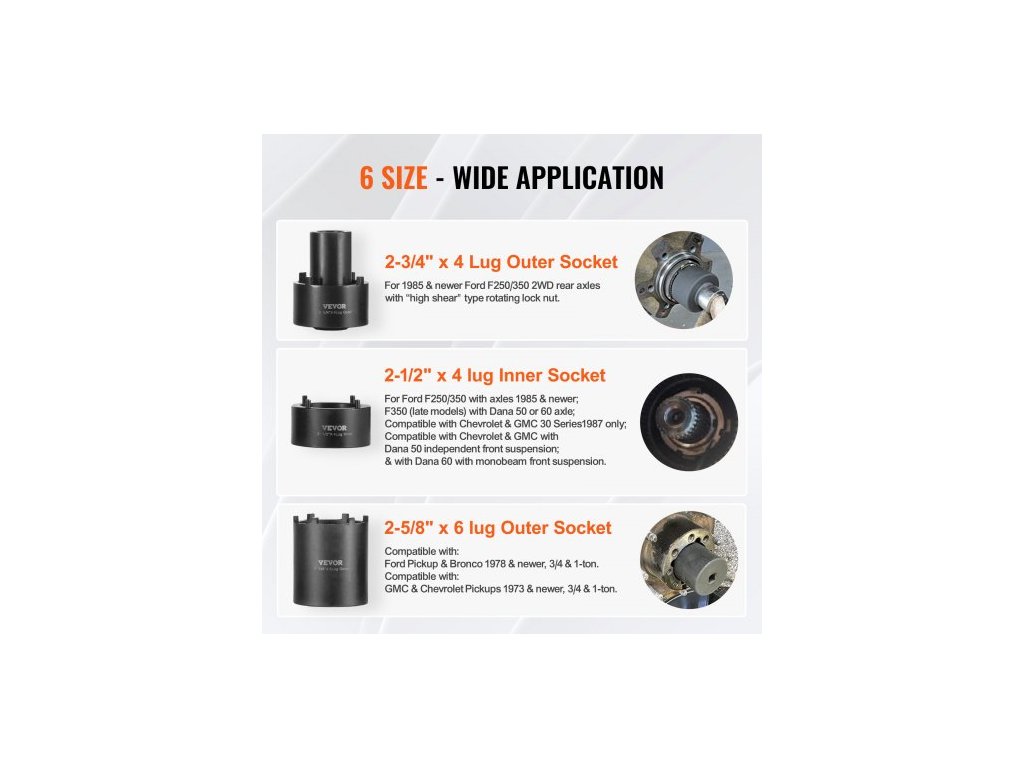 Sada nářadí pro matice vřetena, 6dílná sada nástrčných klíčů na matice náboje nápravy s pohonem 1/2 palce, pro vozidla Toyota, Ford, 4x4 a GM, s úložným pouzdrem, demontážní nástroj na pojistky matic vřetena nápravy