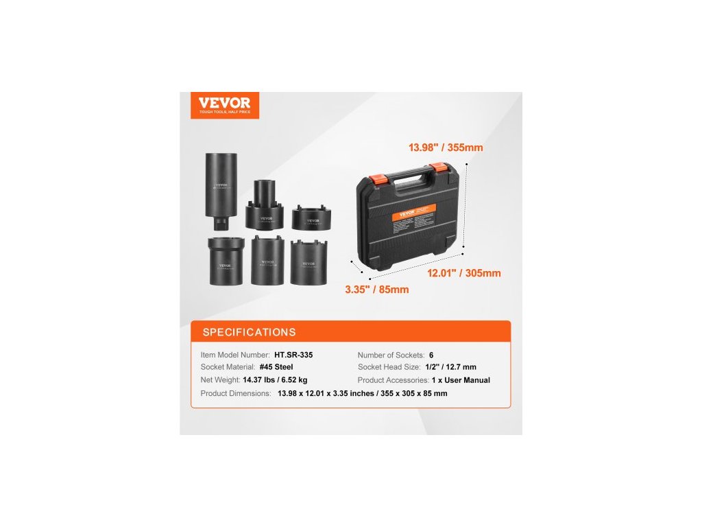 Materiál nástrčných klíčů: Cr-Mo,Počet nástrčných klíčů: 6,Číslo modelu položky: HT.SR-335,Velikost hlavy nástrčného klíče: 1/2" / 12,7 mm,Rozměry výrobku: 13,98 x 12,01 x 3,35 palce / 355 x 305 x 85 mm,Čistá hmotnost: 14,37 lbs / 6,52 kg