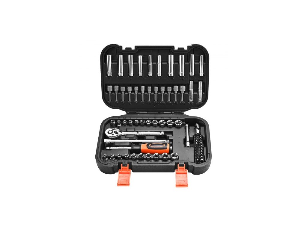 Sada nástrčných klíčů , 70 kusů, sada nástrčných klíčů a ráčny 6,4 mm, SAE a metrické, hluboké a mělké, sada nářadí pro mechaniky s bity, příslušenstvím a úložným pouzdrem, legovaná ocel CR-V, pro opravy automobilů