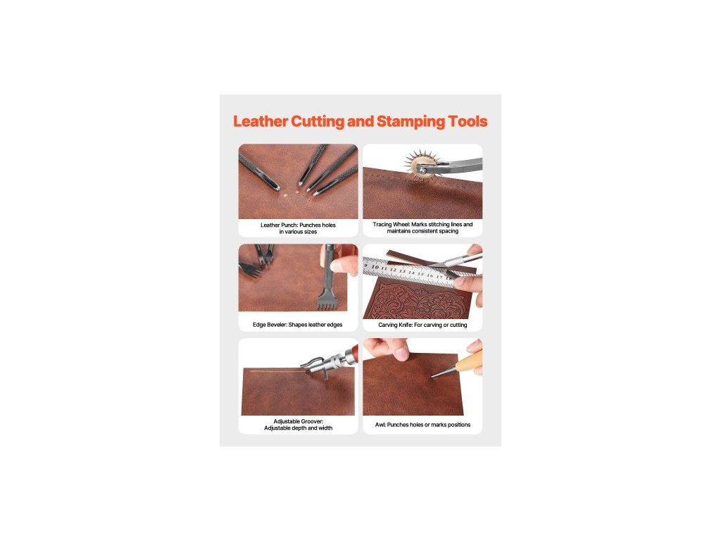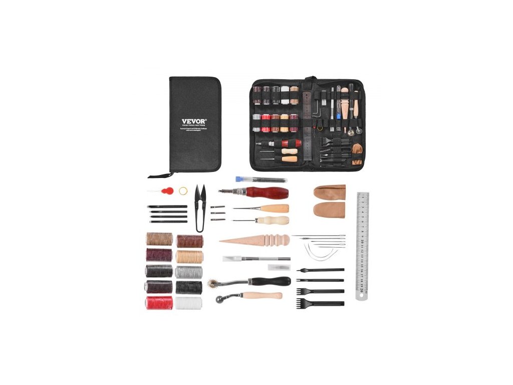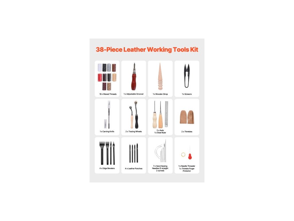 Sada nástrojů pro práci s kůží, 38 ks nástrojů pro kožené řemeslo s přenosnou plátěnou úložnou taškou, gravírování, děrování, šití, ražení a řezání, ideální pro začátečníky, kutily a profesionály