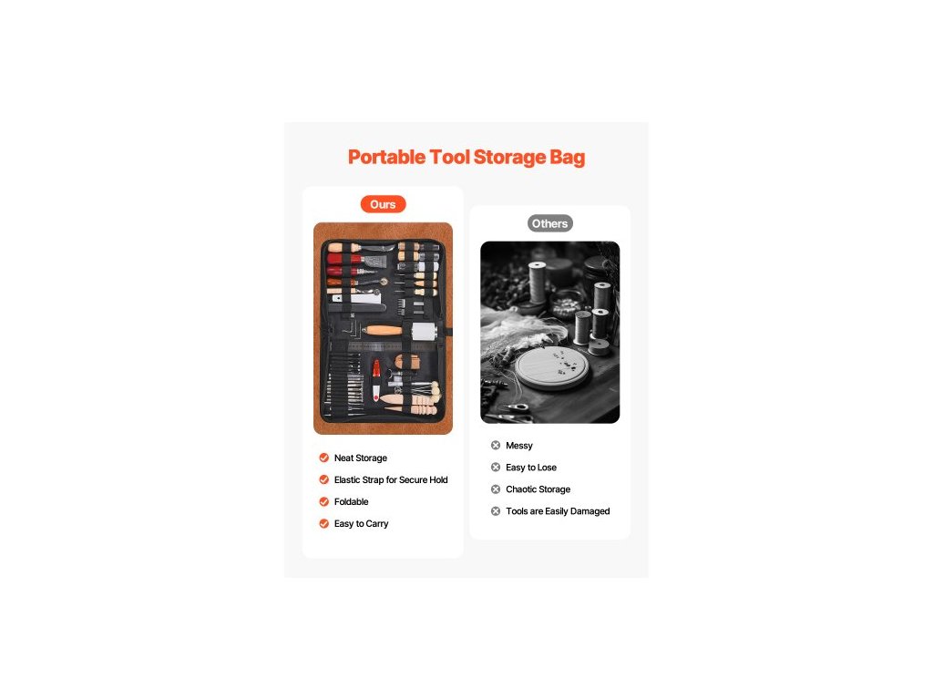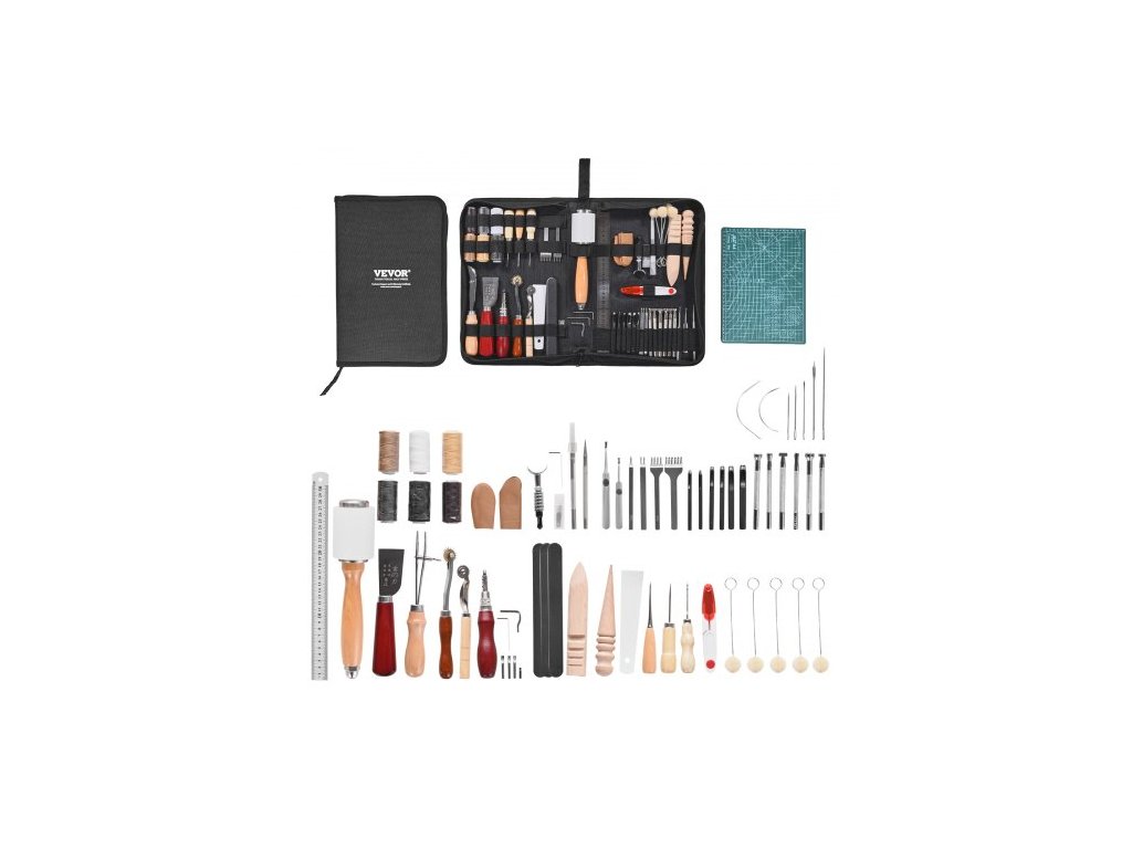 Sada nástrojů pro práci s kůží, 59 ks nástrojů pro kožené řemeslo s přenosnou plátěnou úložnou taškou, gravírování, děrování, šití, ražení, brusné nástroje, ideální pro začátečníky, kutily a profesionály