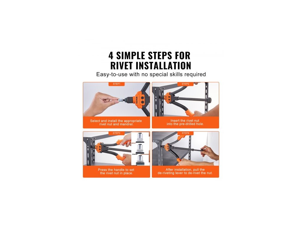 Materiál nýtovací matice: Q235,Číslo modelu položky: DY-8806,Hmotnost výrobku: 6,17 lbs / 2,80 kg,Maximální pracovní síla Zdvih: 0,3"" / 8 mm, Rozměry výrobku: 14,06″ x 6,50″ x 1,57″ / 357 × 165 × 40 mm