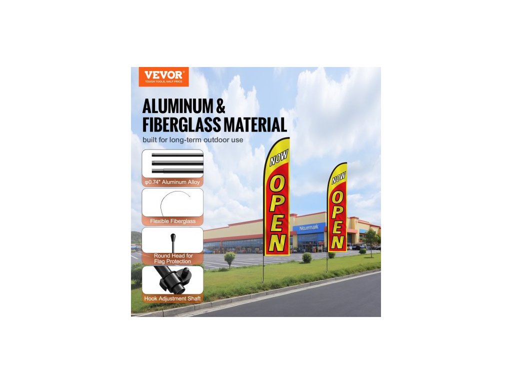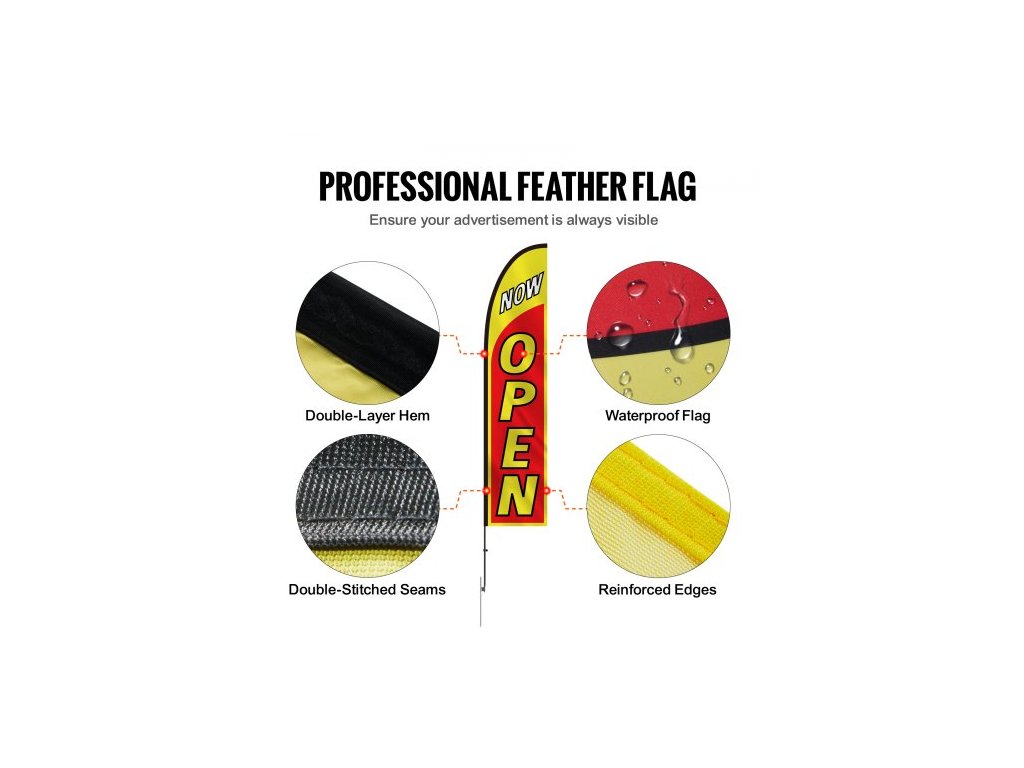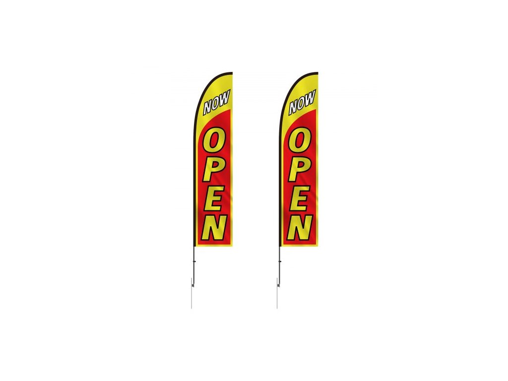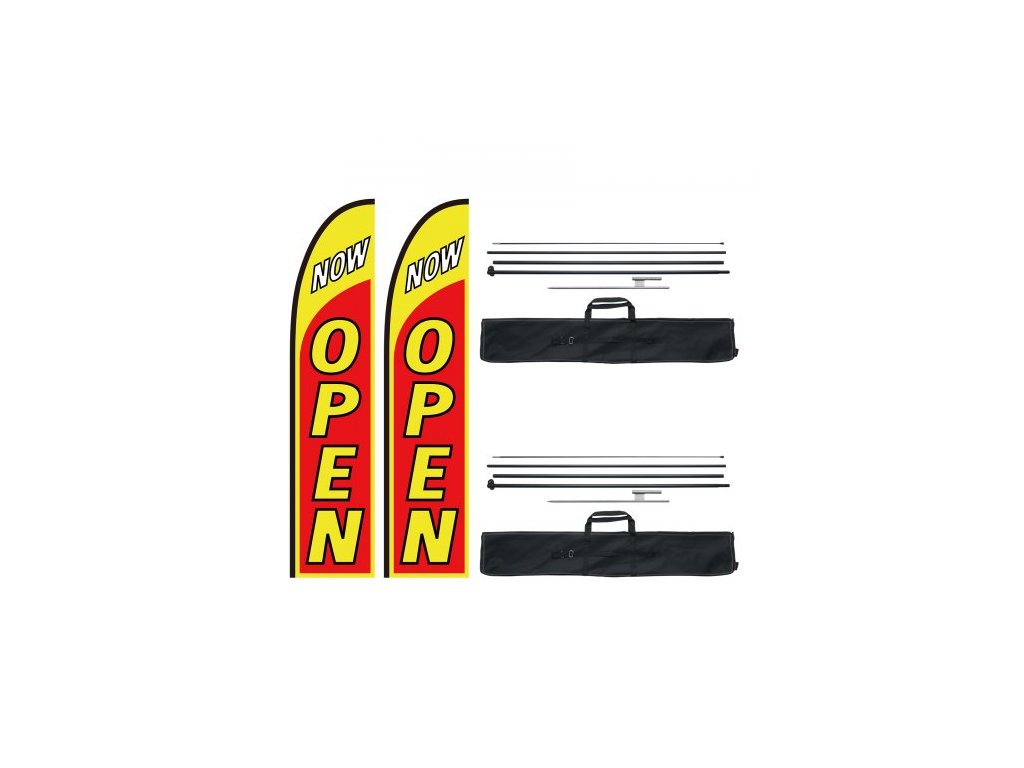 Sada otevřených vlajek s tyčí , Reklamní vlajky pro firmy venku, Sada reklamních vlajek s peřím, Obsahuje 2 bannerové vlajky, 2 stožáry, 2 kolíky do země, Otevřené vlajky Swooper pro firmy 16,3 FTOdolný materiál