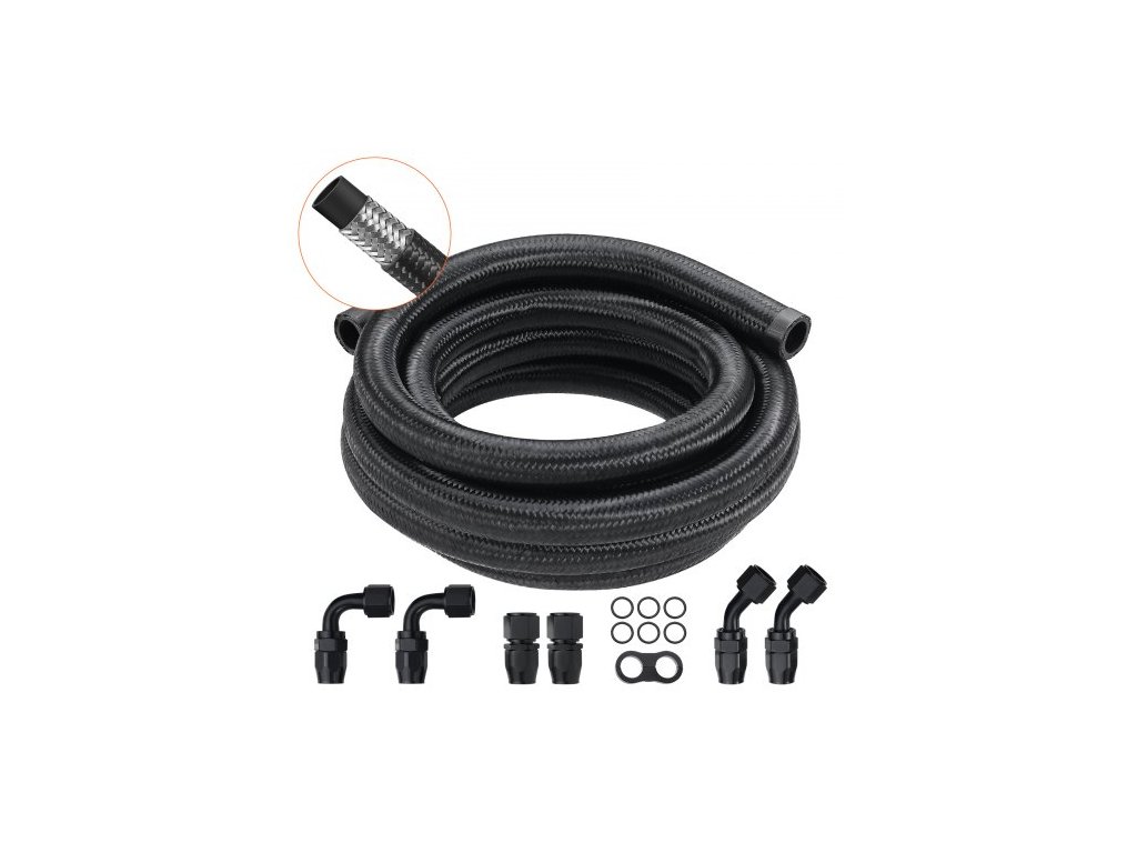 Sada palivového potrubí 10AN, sada palivové hadice 10 FT, sada koncovek hadice pro palivové potrubí s opletením z nylonu a nerezové oceli 0,55" pro olej/benzín/naftu, se 7dílnou sadou otočných adaptérů, černáUniverzální hydraulická hadice 10AN