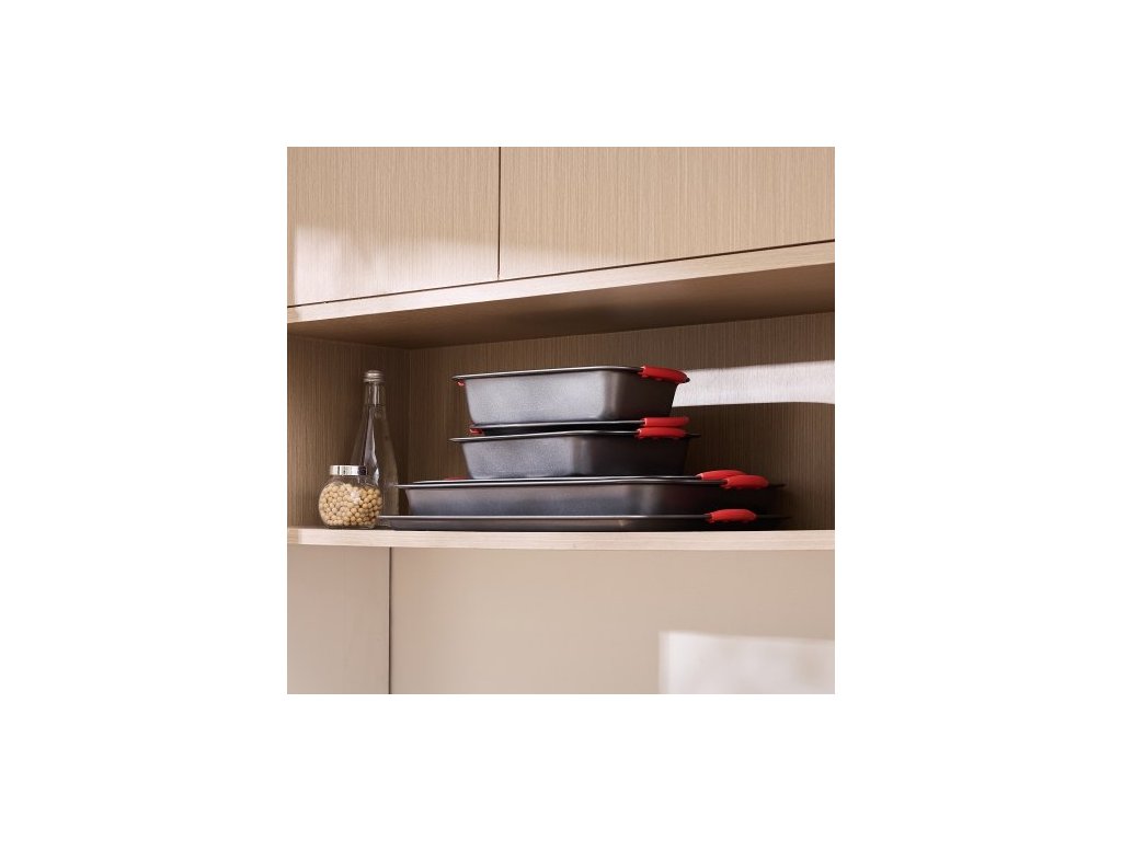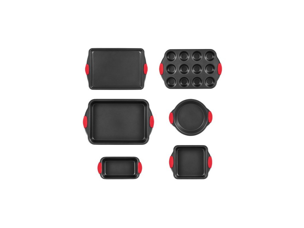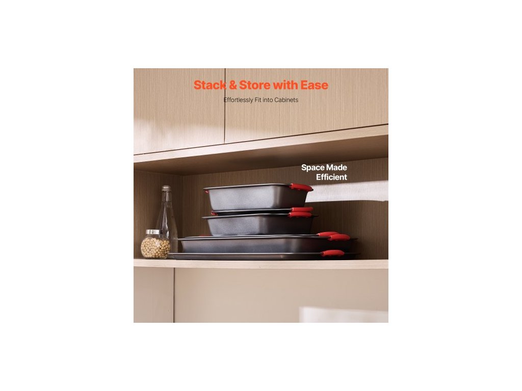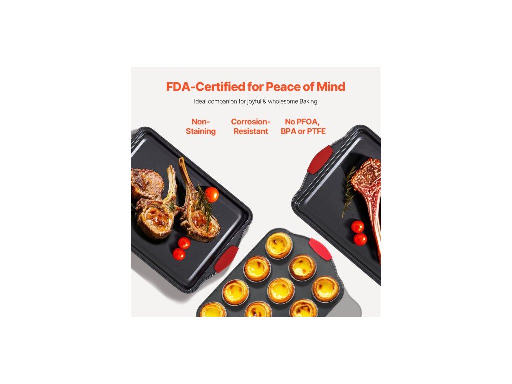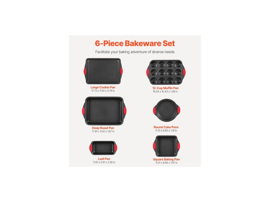 Sada pekáčů , 6dílná, nepřilnavé plechy a tácy z uhlíkové oceli, stohovatelné sady na pečení do kuchyňské trouby se silikonovými rukojeťmi, snadno se čistí, na pečení sušenek, dortů, muffinů