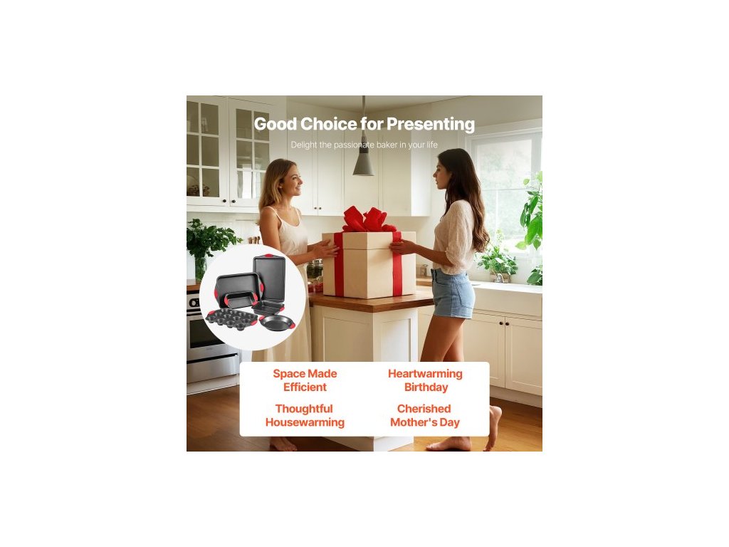 Sada pekáčů , 6dílná, plechy a tácy z uhlíkové oceli s nepřilnavým povrchem, stohovatelné sady na pečení do kuchyňské trouby se silikonovými rukojeťmi, snadno se čistí, na pečení sušenek, dortů, muffinůNezbytnost pro domácí pečení