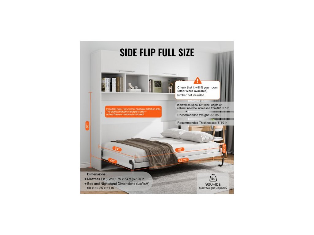 Sada postele Murphy, plná velikost, sada mechanického hardwaru pro luxusní nástěnnou postel, pneumatická páková podpěra rámu postele s vysokou nosností, skládací skříňka, nástěnná postel, prostorově úsporný design pro pokoj pro hosty, snadná montážDlouhá životnost
