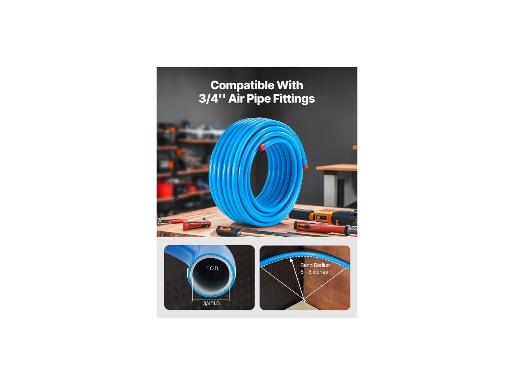 Sada potrubí pro vzduchový kompresor , 100FT x 3/4", systém potrubí pro stlačený vzduch z HDPE a hliníku, těsný, tlakotěsný a snadno instalovatelný, sada potrubí pro stlačený vzduch pro garáže a dílny, modráIdeální do jakéhokoli prostoru