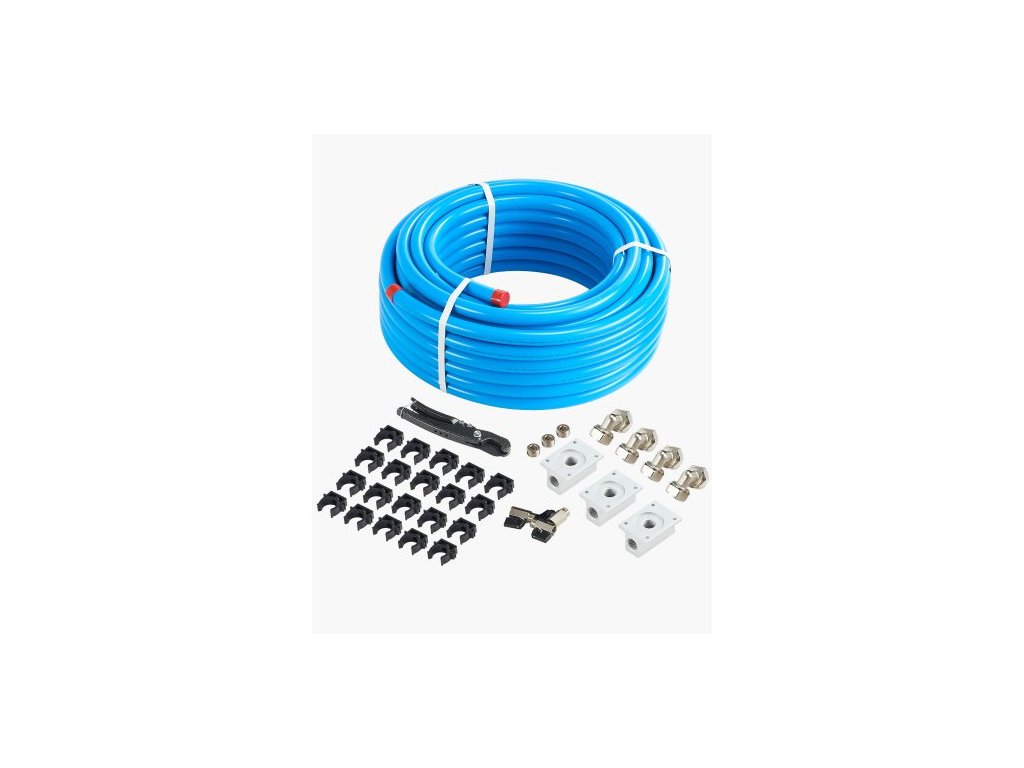 Sada potrubí pro vzduchový kompresor , 100 stop x 3/4", systém potrubí pro stlačený vzduch z HDPE a hliníku, těsný, tlakotěsný a snadno instalovatelný, sada trubek pro stlačený vzduch pro garáže a dílny, modrá