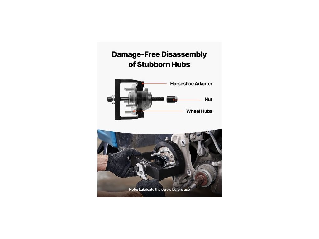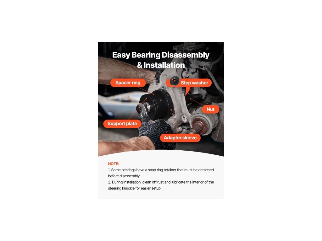 Sada pro demontáž a montáž náboje kola a ložiska Master, pasuje na většinu vozidel s pohonem předních kol, nástroj pro demontáž ložiska předního kola, sada pro montáž ložiska kola, snadná výměna ložiska bez nutnosti lisováníNástroj pro opravu náboje 2 v 1