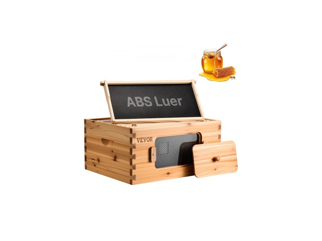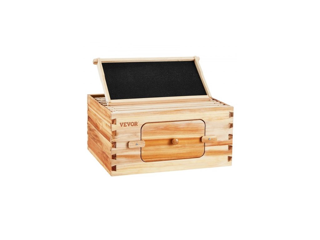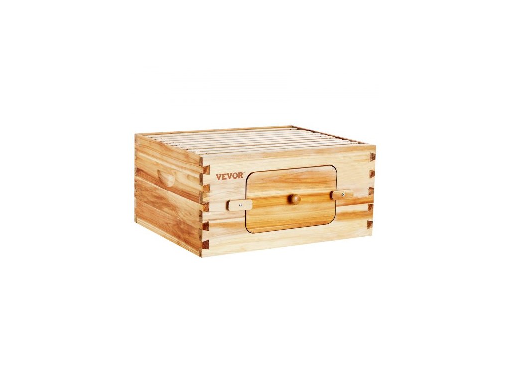 Sada pro hluboký úl, 100% přírodní jedlové dřevo s nátěrem včelím voskem, sada úlu Langstroth s 10 rámky a základy, průhledná akrylová okénka pro začátečníky i profesionályVysoce kvalitní cedrové dřevo