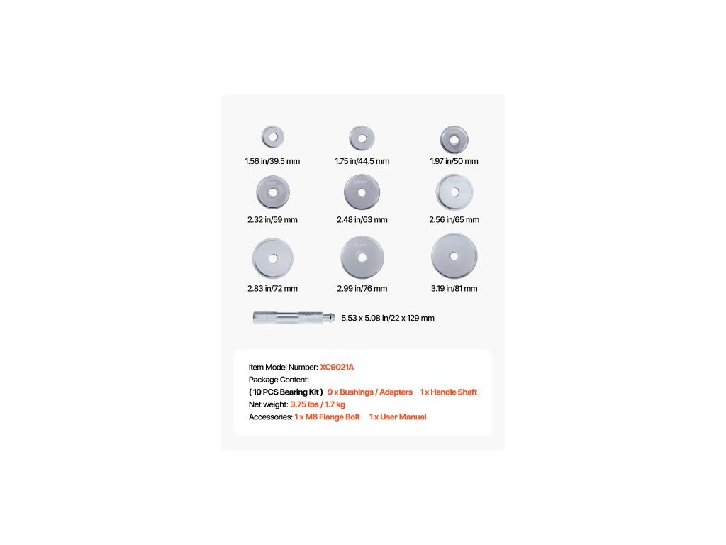 Sada pro lisování ložisek , 10dílná sada nástrojů pro lisování ložisek a těsnění s 9 pouzdry a rukojetí, sada nástrojů pro lisování pouzder, sada nástrojů pro demontáž a montáž z odolné hliníkové slitiny s úložným pouzdremSada ložisek