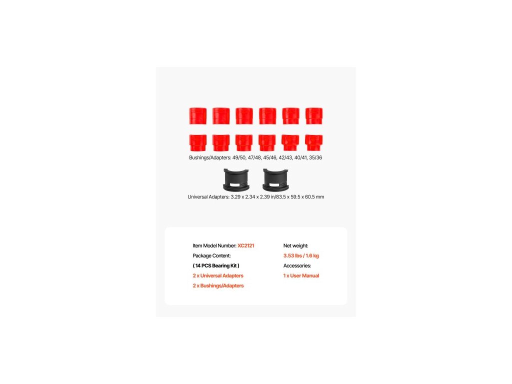 Sada pro lisování ložisek , 14dílná, sada nástrojů pro utahování ložisek a těsnění s pouzdry a adaptéry, sada nástrojů pro utahování pouzder, sada nástrojů pro demontáž a montáž těsnění z uhlíkové oceli pro vysoké zatížení s úložným pouzdremSada ložisek