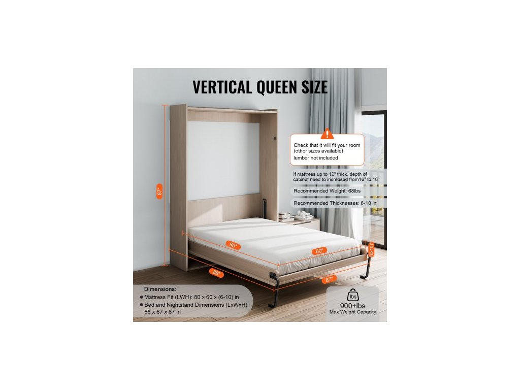 Rozměry úložného prostoru: 16x67x87 palců / 405x1700x2210 mm,Rozměry po instalaci (DxŠxV): 86x67x87 palců / 2185x1700x2210 mm,Číslo modelu položky: YFHVQN246,Maximální nosnost matrace: 68 liber / 31 kg,Rozměry kompatibilní matrace (DxŠxV): 80x60x(6-10) palců / 2032x1524x(152-254) mm, Čistá hmotnost: 14,8 lbs / 6,7 kg