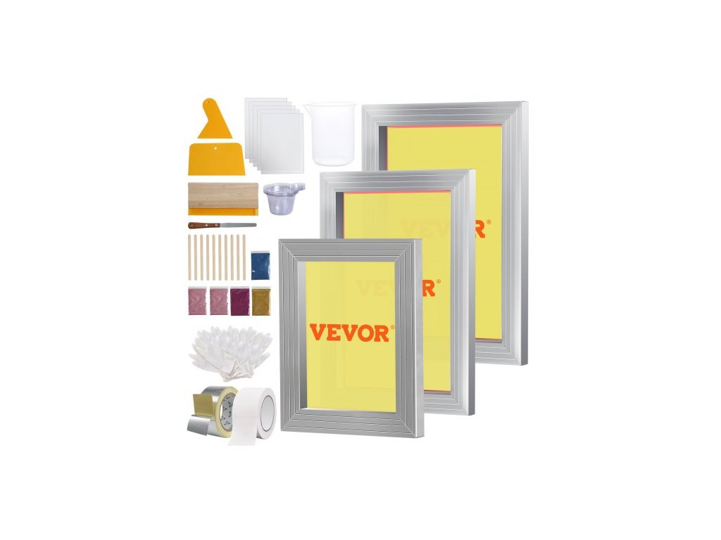 Počet sítotiskových rámů: 3,Materiál síťoviny: Polyester,Velikost č. 3: 6 x 10 palců / 15,2 x 25,4 cm,Velikost č. 2: 8 x 12 palců / 20,3 x 30,48 cm,Tloušťka rámu: 0,8 palce / 2 cm,Počet ok: 110,Materiál rámu: Hliníková slitina,Velikost č. 1: 10 x 14 palců / 25,4 x 35,6 cm, Čistá hmotnost: 1,6 kg, Rozměry balení: 37 x 33 x 10,5 cm