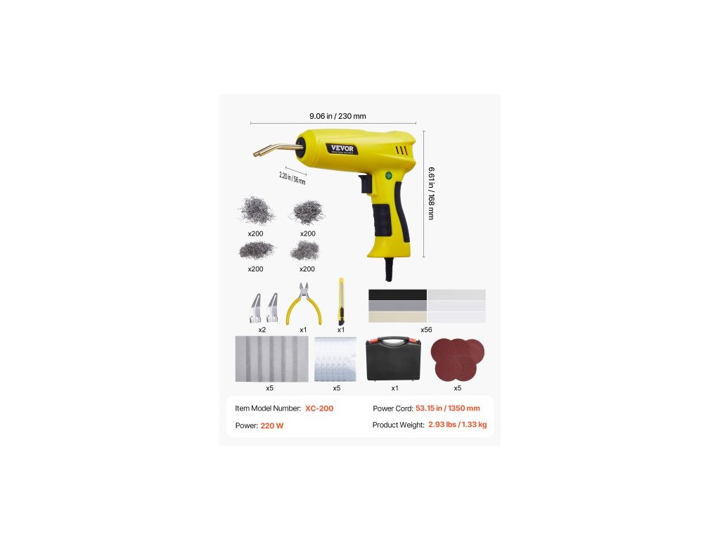 Sada pro svařování plastů , svářečka na plasty 220 W s 800 ks tavných spon a 56 ks svařovacích tyčí, profesionální tavná svařovací pistole s LED světlem, přepravní pouzdro na kajak, hračky, opravu nárazníků automobilůMultifunkční sada