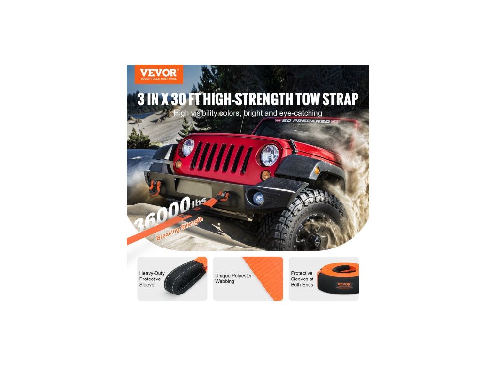 Sada pro vyprošťování tažného popruhu pro těžký provoz, 3" x 30 stop (MBS-36 000 liber), popruh pro naviják Tree Saver, trojitá zesílená smyčka a ochranné návleky a úložný vak, 3/4" D-kroužky, pro nákladní automobily, Jeep, SUV, čtyřkolkyVysoká pevnost