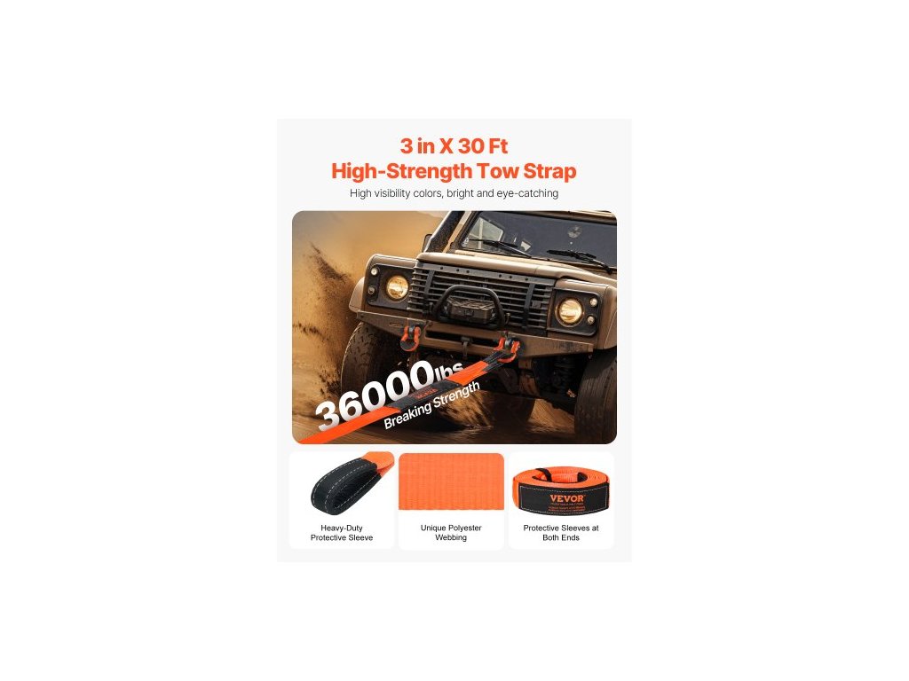 Tloušťka tažného popruhu: 0,14 palce/3,5 mm,Číslo modelu položky: LC-RK02,Hmotnost výrobku: 11,2 lbs / 5,1 kg,Materiál: Polyester,Pevnost tažného popruhu: 36000 lbs/16329 kg,Rozměry výrobku: 3 palce x 30 stop / 76,2 mm x 9,1 m