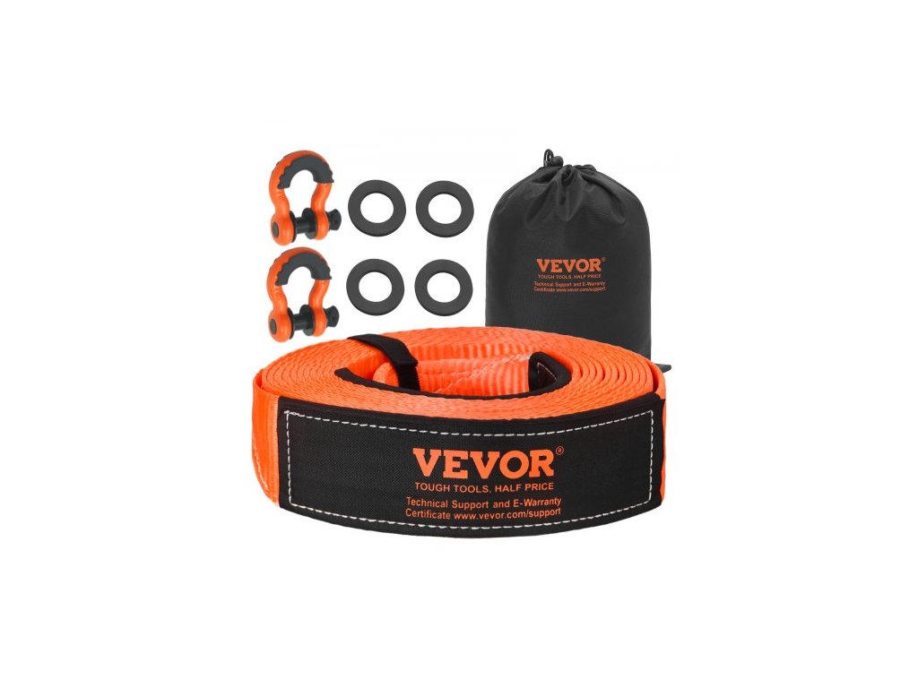 Sada pro vyprošťování tažného popruhu pro vysoké zatížení 76,2 mm x 9,1 m (MBS-16329 kg) Popruh pro naviják Tree Saver, trojitá zesílená smyčka a ochranné návleky a úložný vak, 19mm D-kroužky, pro nákladní automobily, jeep, SUV, čtyřkolkyVysoká pevnost