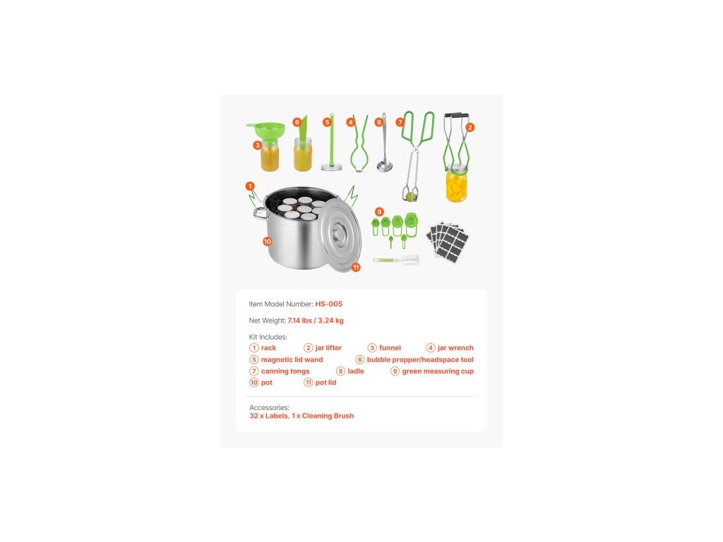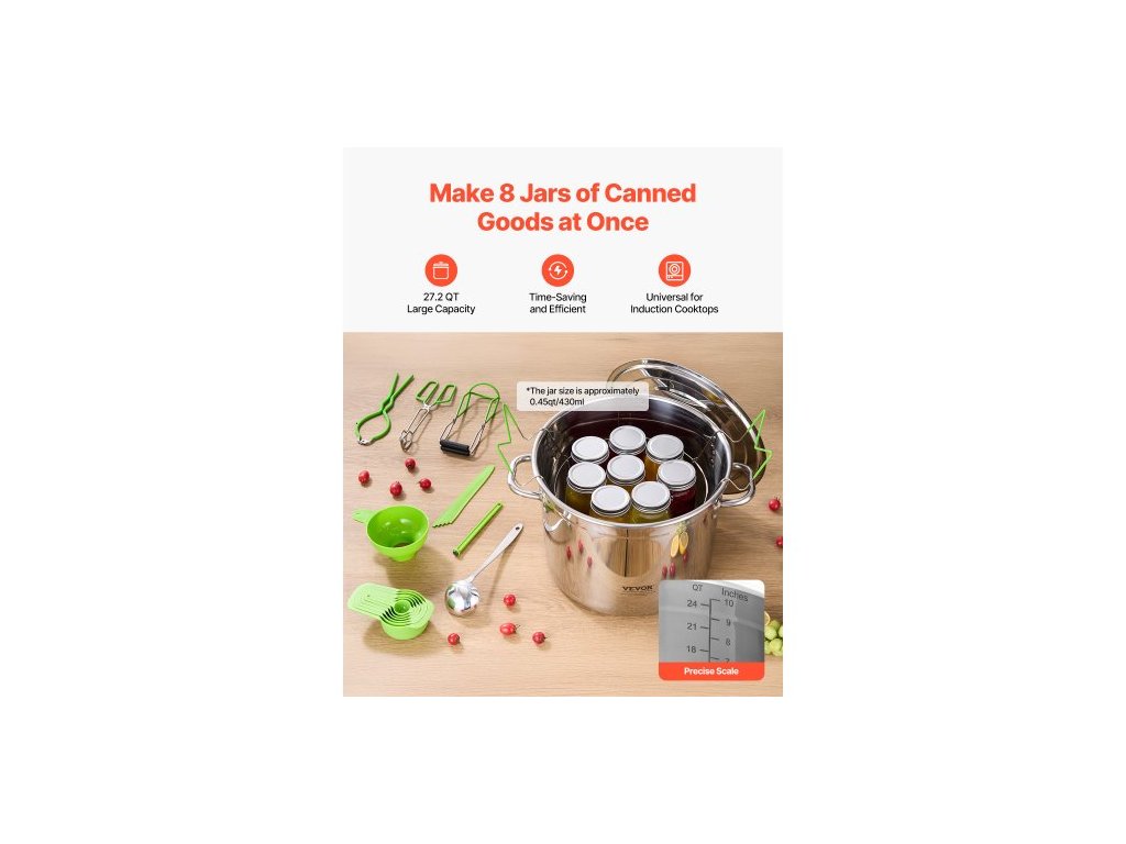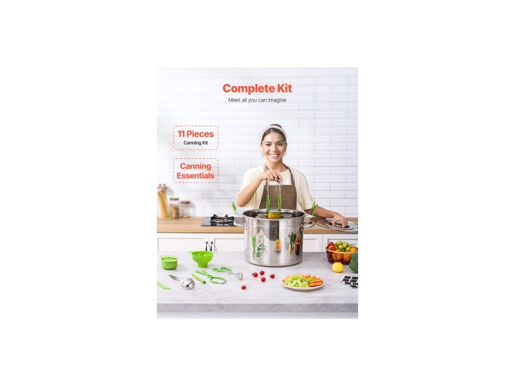 Sada pro zavařování, 11dílná sada na zavařování z nerezové oceli ve vodní lázni pro začátečníky, sada zavařovacích nástrojů: hrnec, rošt, víko, naběračka, trychtýř, kleště, zvedák sklenic, klíč, odměrkaVíceúčelová sada