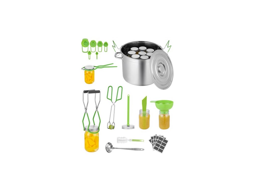 Sada pro zavařování, 11dílná sada na zavařování ve vodní lázni z nerezové oceli pro začátečníky, sada zavařovacích nástrojů: hrnec, rošt, víko, naběračka, trychtýř, kleště, zvedák sklenic, klíč, odměrka