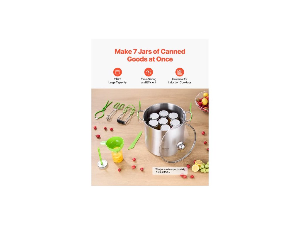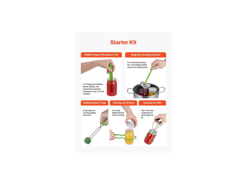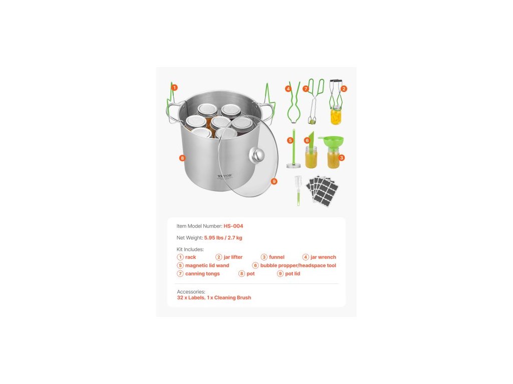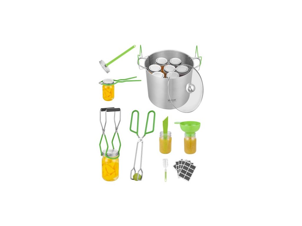 Sada pro zavařování, 9dílná sada na zavařování z nerezové oceli ve vodní lázni pro začátečníky, sada zavařovacích nástrojů: hrnec, rošt, víko, trychtýř, kleště, zvedák sklenic, klíč, magnetická tyč, bublinkový vrtákVíceúčelová sada