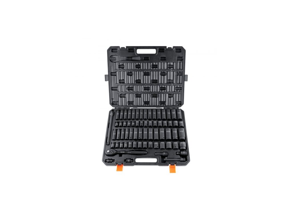 Sada rázových nástrčných klíčů: 65 kusů, Číslo modelu položky: SS213878655, Materiál: legovaná ocel Cr-V, Tvrdost: HRC42-48, Čistá hmotnost: 32,85 lbs / 14,9 kg, Rozměry výrobku: 21,06 x 16,85 x 2,68 palce / 535 x 428 x 68 mm