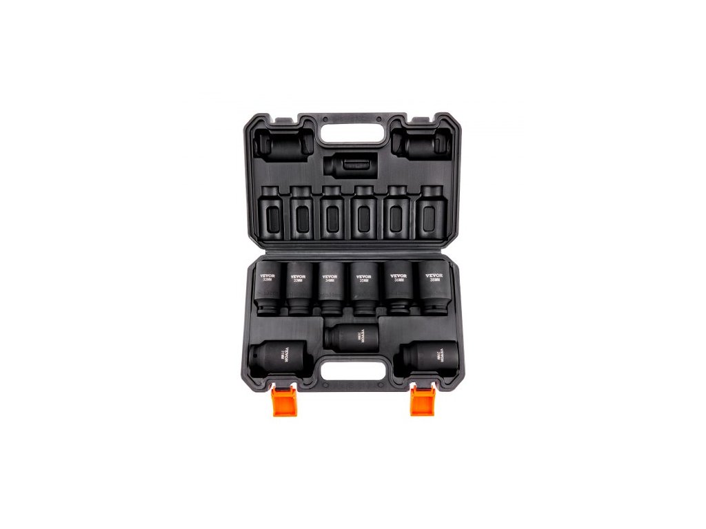 Sada rázových nástrčných klíčů: 9 kusů, hluboké nástrčné klíče: 29 mm, 30 mm, 31 mm, 32 mm, 33 mm, 34 mm, 35 mm, 36 mm, 38 mm.,Číslo modelu položky: SS217809A,Materiál: legovaná ocel Cr-Mo,Tvrdost: HRC42-48,Čistá hmotnost: 11,02 lbs / 5,0 kg,Rozměry výrobku: 13,11 x 8,46 x 2,76 palce / 333 x 215 x 70 mm