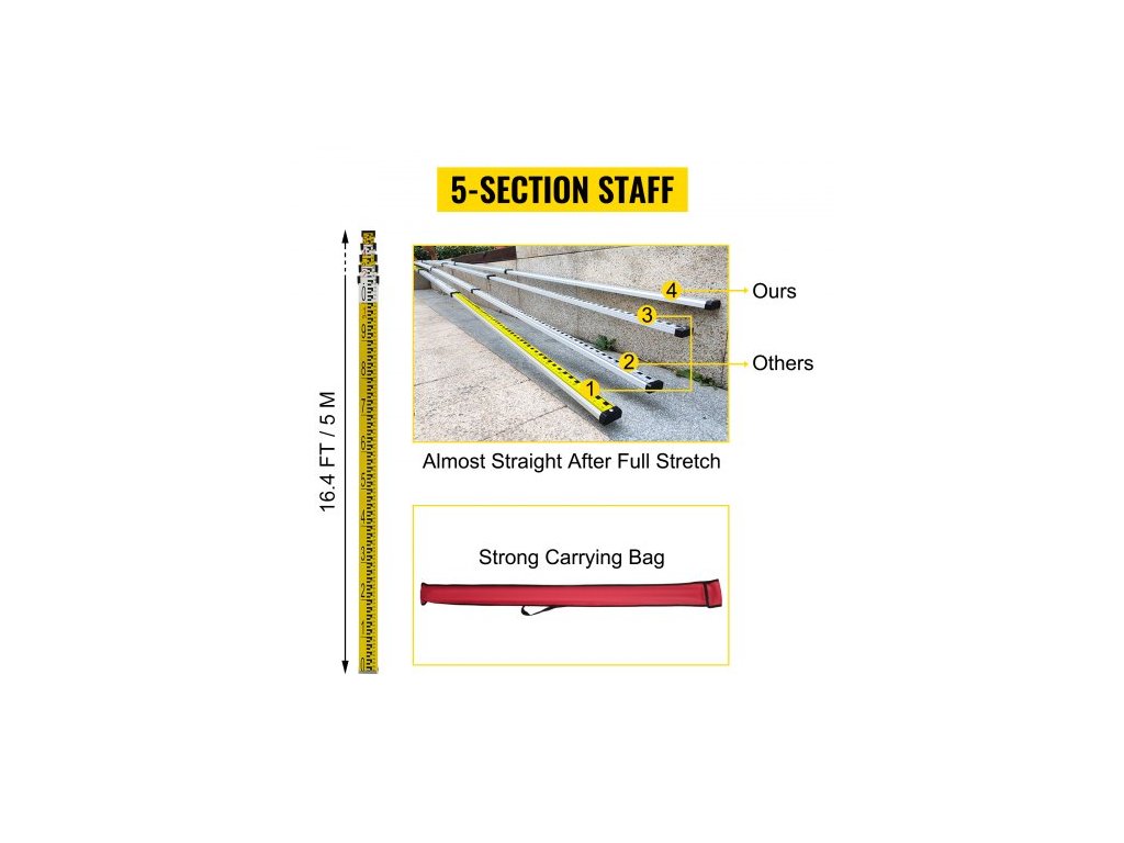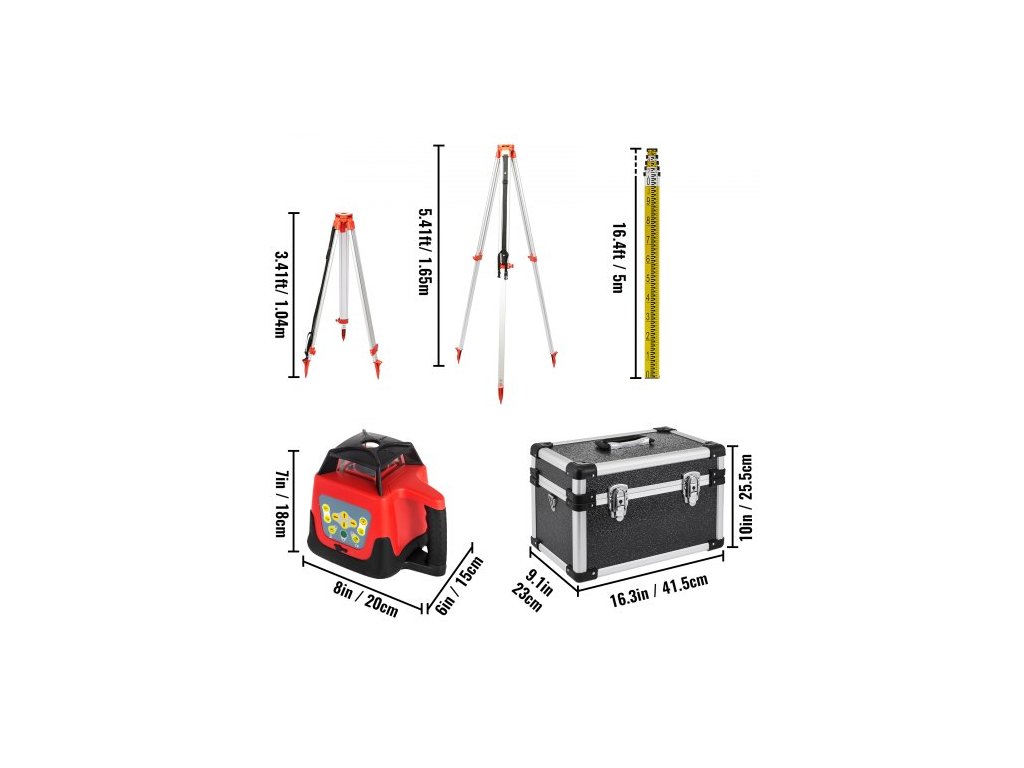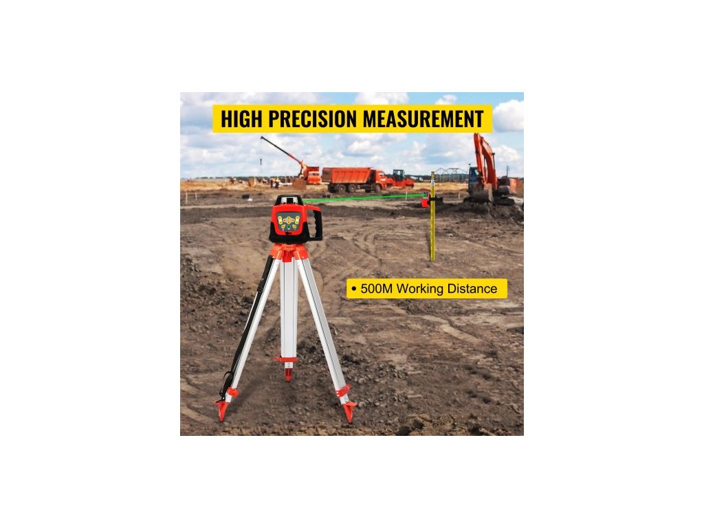 Sada rotačního laserového nivelačního přístroje Green s nastavitelným stativem a 5m latí, dosah 500m, rotační skenování 360 stupňů, samonivelační laserový nivelační systém, pro stavební projekciPřesné měření