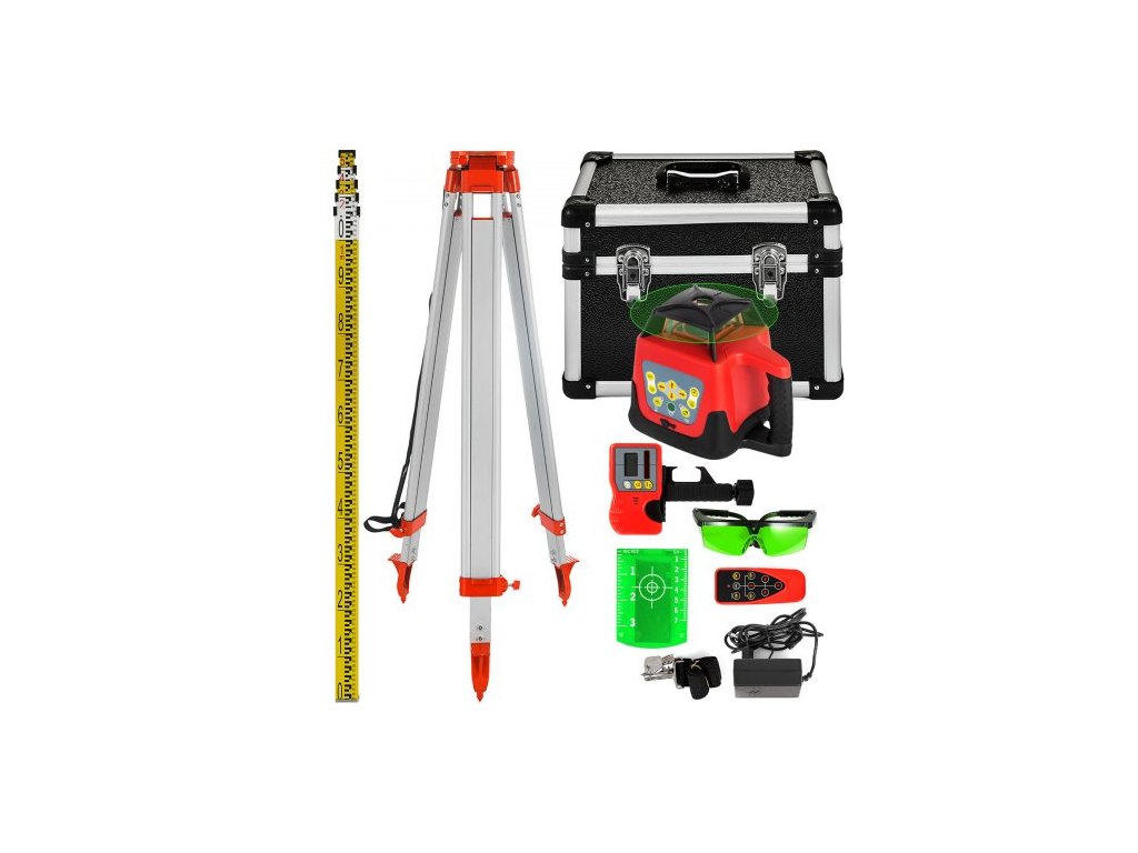 Sada rotačního laserového nivelačního systému Green s nastavitelným stativem a 5m latí, dosah 500m, 360stupňové rotační skenování, samonivelační laserový nivelační systém, pro stavební projektování