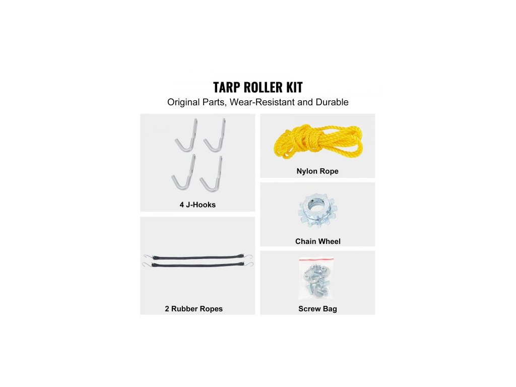 Sada ručních plachtových válečků , šířka 64" až 104", hliníková slitina, manuální plachtový váleček pro sklápěče s houbičkovou rukojetí o šířce 7", ideální pro sklápěče, přívěsy a popelářské vozy (bez plachty)