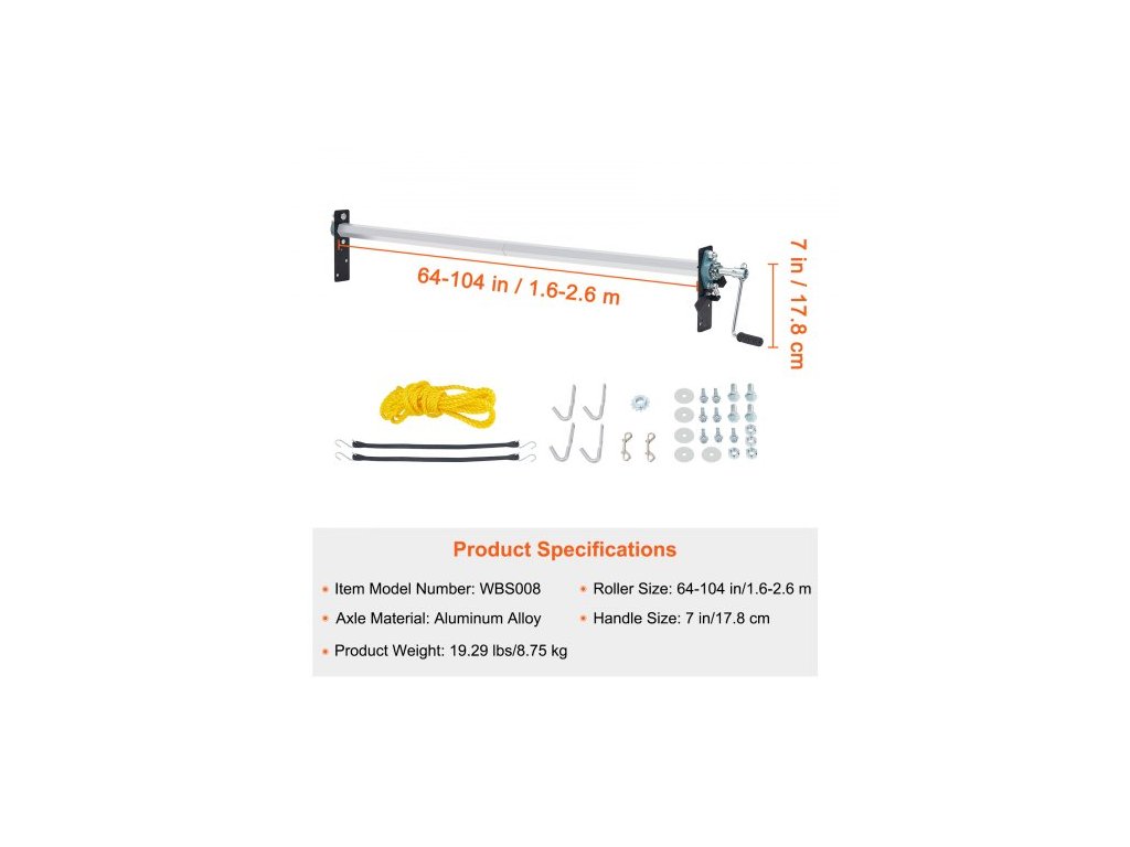 Velikost rukojeti: 7 palců/17,8 cm,Číslo modelu položky: WBS008,Velikost válečku: 64-104 palců/1,6-2,6 m,Hmotnost výrobku: 19,29 lbs/8,75 kg,Materiál nápravy: hliníková slitina