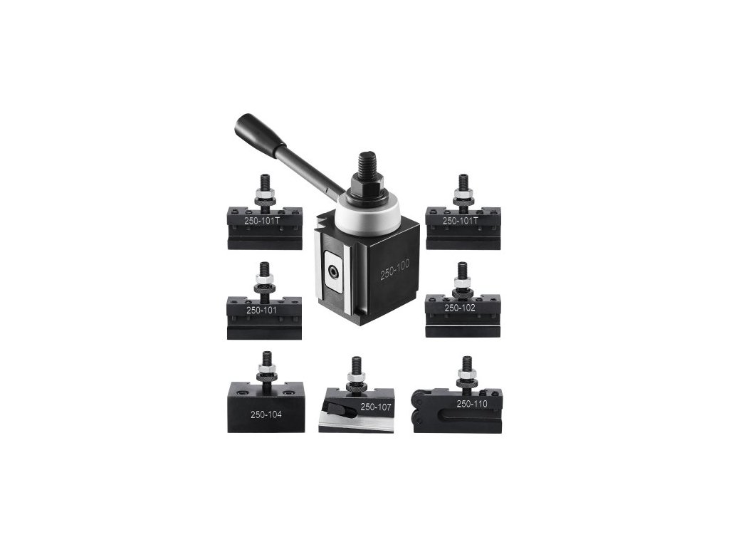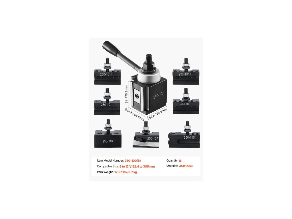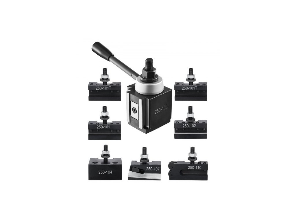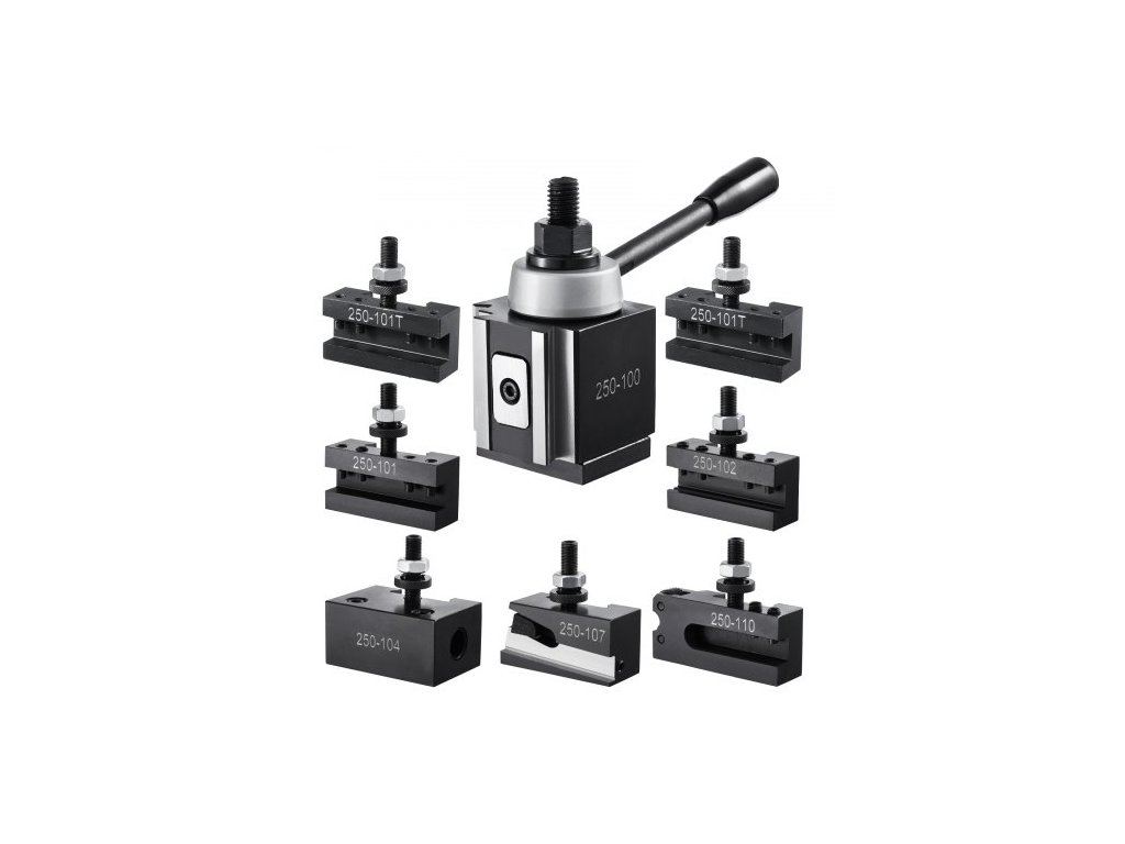 Sada rychlovýměnných nástrojových sloupků , 8 kusů, obsahuje držáky soustružnických nástrojů, klínový nástrojový sloupek s příslušenstvím pro držáky soustružnických nástrojů, vhodné pro mini soustruh a kovový soustruh, výkyv 152-305 mm (6"-12"),