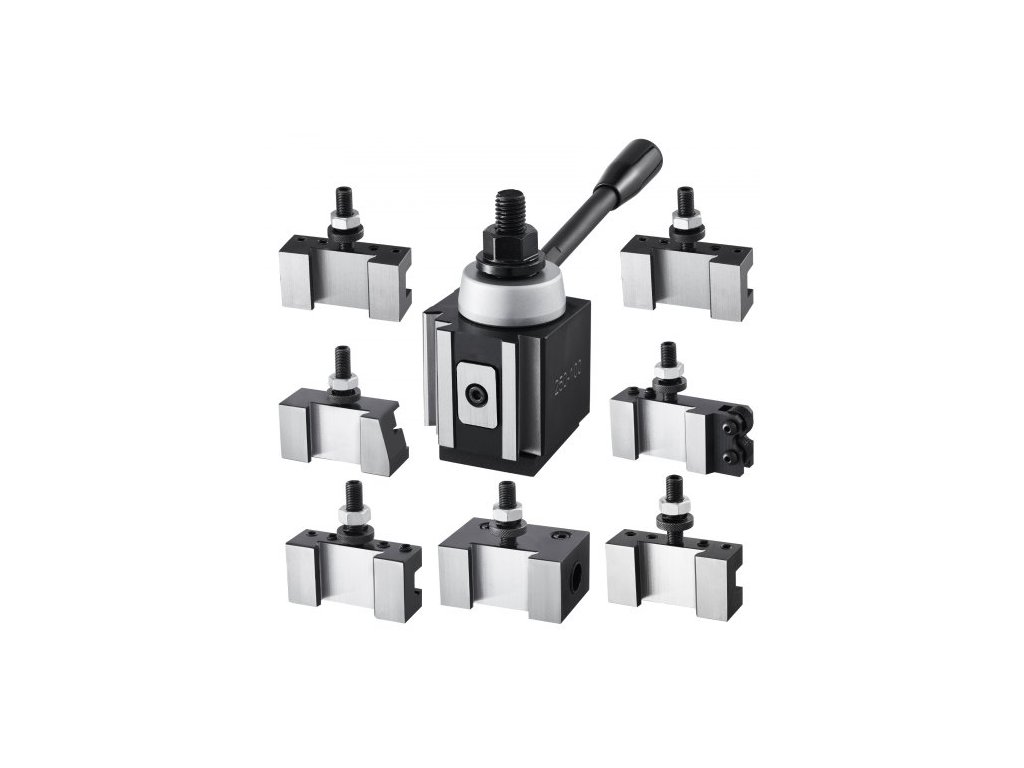Sada rychlovýměnných nástrojových sloupků , 8 kusů, včetně držáků soustružnických nástrojů, klínový nástrojový sloupek s příslušenstvím pro držáky soustružnických nástrojů, vhodné pro mini soustruh a kovový soustruh s výkyvem 152–305 mm (6–12"), odolný ocelový materiál8dílná sada rychlovýměnných nástrojových sloupků